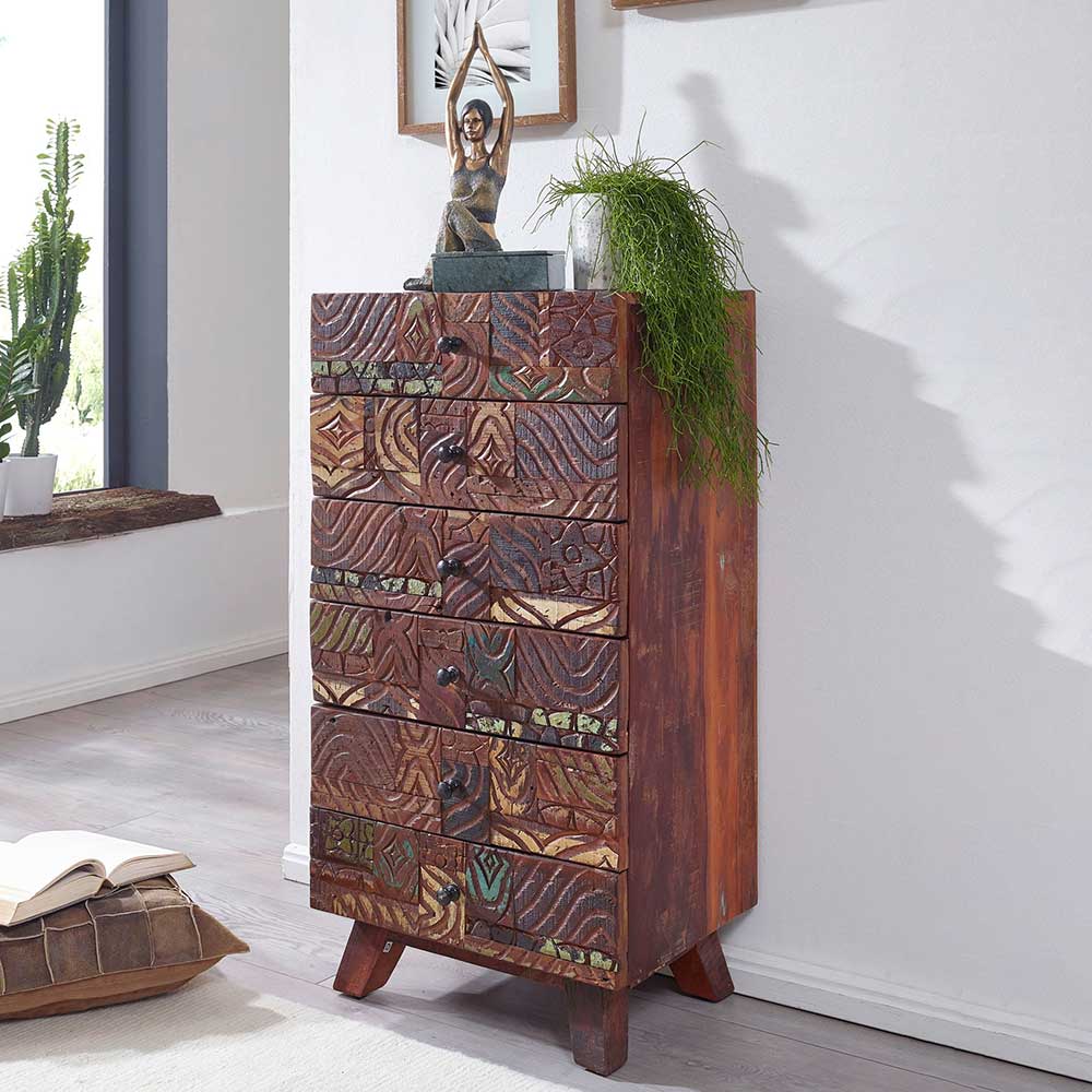 Hochkommode in Bunt geschnitzt Recyclingholz
