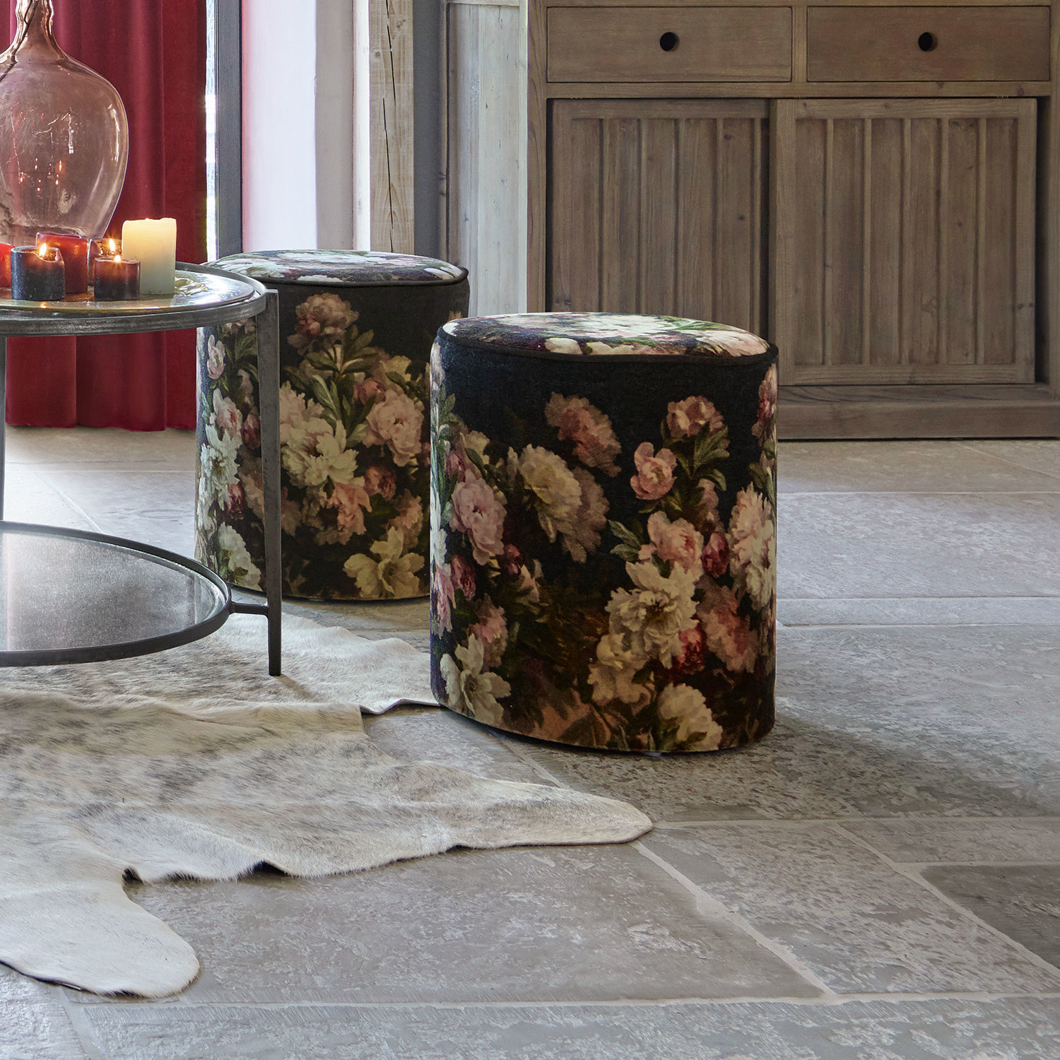 Dekoration und Funktion sind hier perfekt vereint. Der wunderschöne, recht handliche Hocker bezaubert mit einem weichen Bezug aus hochwertigem Baumwollsamt, welchen ein digitaler 3D-Blumenprint ziert. Dadurch wirkt das Blütenmuster sehr opulent und plastisch. Das hölzerne Gestell unter dem Bezug ist stabil und bequem. Der Keder um die Sitzfläche ist ein weiteres, feines Detail des attraktiven Accessoires. Hiermit setzen Sie einen reizenden Akzent und schaffen zugleich schnell und einfach eine zusätzliche Sitzmöglichkeit. Dank der handlichen Größe ist der elegante Hocker auch bestens für kleine Räume geeignet. Er lässt sich zudem sehr flexibel für jedes Zimmer nutzen, ob im Schlafraum, am Schminktisch oder im Wohnzimmer platziert.