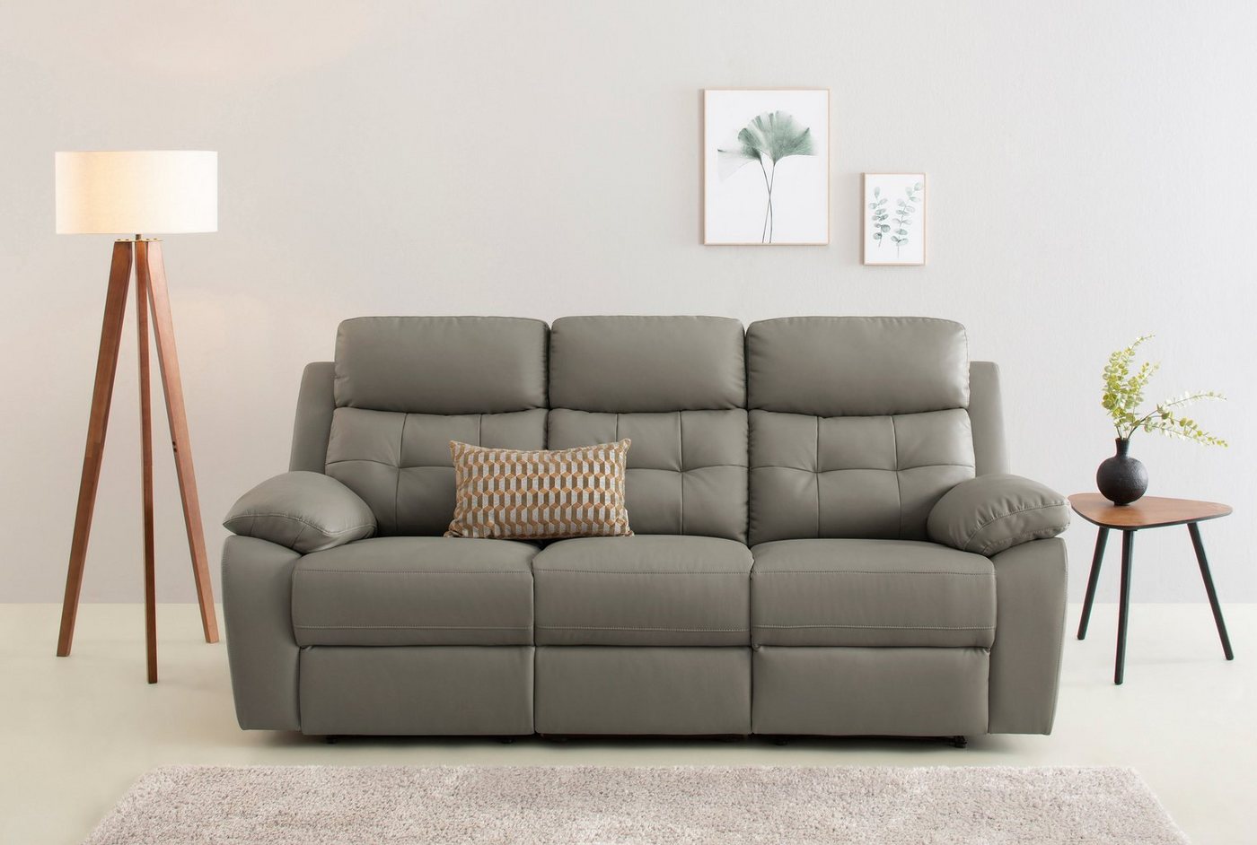 Mit Federkern ausgestattetes Sofa Hohe Sitzqualität und lange Lebensdauer bietet dir dieser 3-Sitzer »Lannilis« von Home affaire mit PUR-Schaumstoff-Polsterung. Er ist stufenlos verstellbar, sodass du die Position ganz individuell festlegen kannst. Bei etwa 120 Kilogramm liegt die maximale Belastbarkeit pro Sitzplatz. Der Bezug aus Kunstleder ist pflegeleicht und besonders strapazierfähig. Inspiration für dein Wohnzimmer Du fragst dich, wie sich das Möbelstück kombinieren lässt? Hier eine kleine Inspiration für dich: Die Ästhetik des modernen Stils ist reduziert und strahlt eine schlichte Eleganz aus. Indem du die Dekoration in dezenten Farben wie Weiß oder Grau hältst und dich aufs Wesentliche fokussierst, hebst du den Stil noch besser hervor. Praktische Größe vereint mit hohem Sitzkomfort — der 3-Sitzer »Lannilis« von Home affaire.