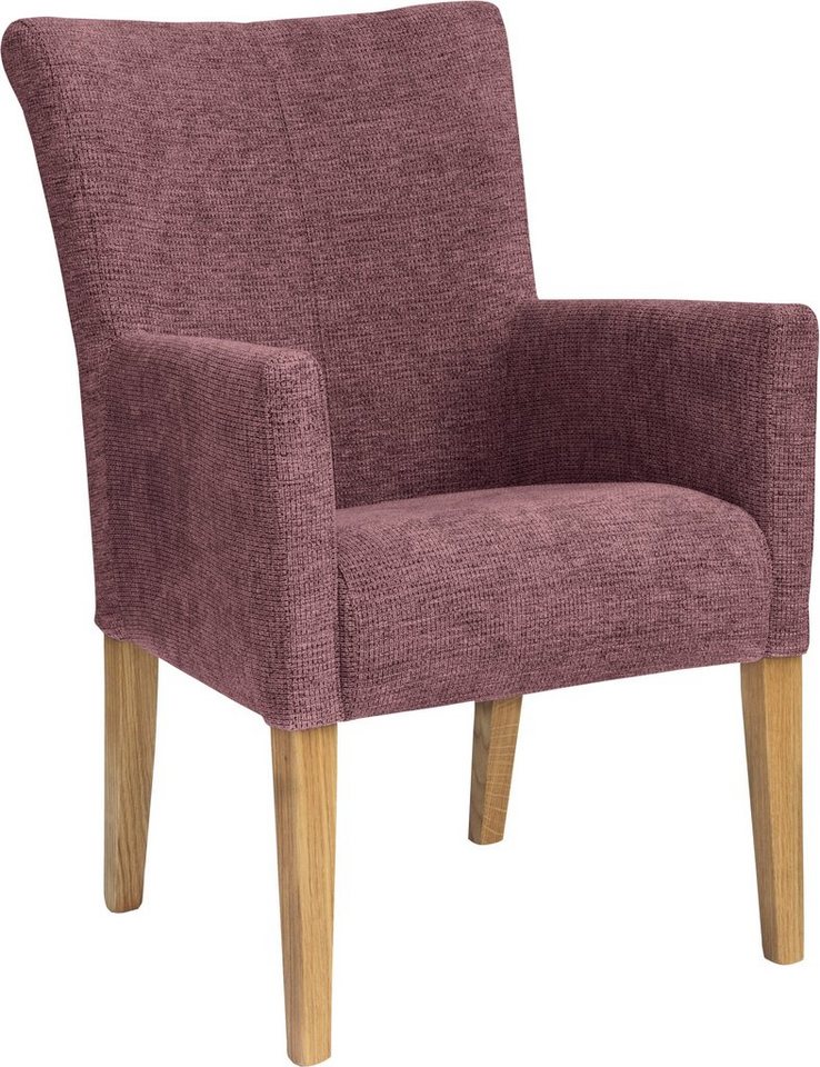 Im gemütlichen Landhausstil präsentiert sich der gepolsterte Armlehnstuhl »King« von Home affaire. Durch seine elegante Knopfheftung im Rücken fügt er sich als Blickfang in deinen Wohn-/Essbereich ein. Der Esszimmerstuhl besticht durch sein modernes Design, bei welchem die klare Formensprache überwiegt. Seine hohe Rückenlehne neigt sich bequem nach hinten. Hierzu passen die halbhohen Seitenteile, die in komfortable Armlehnen münden. Strapazierfähige Bezüge in attraktiver Strukturoptik definieren das Erscheinungsbild. Hierzu ist ein Vierfußgestell aus Massivholz kombiniert, das einen effektvollen Kontrast herstellt. In puncto Sitzkomfort kann der Sessel im Weiteren überzeugen: Alle Komponenten besitzen ein angenehmes Polster und sind ergonomisch angeordnet für ein ermüdungsfreies Sitzen. Der Stuhl überzeugt durch seine hochwertige Verarbeitung. Eignet sich als Beistellmöbel in deinem Schlafzimmer: der gepolsterte Armlehnstuhl »King« von Home affaire.