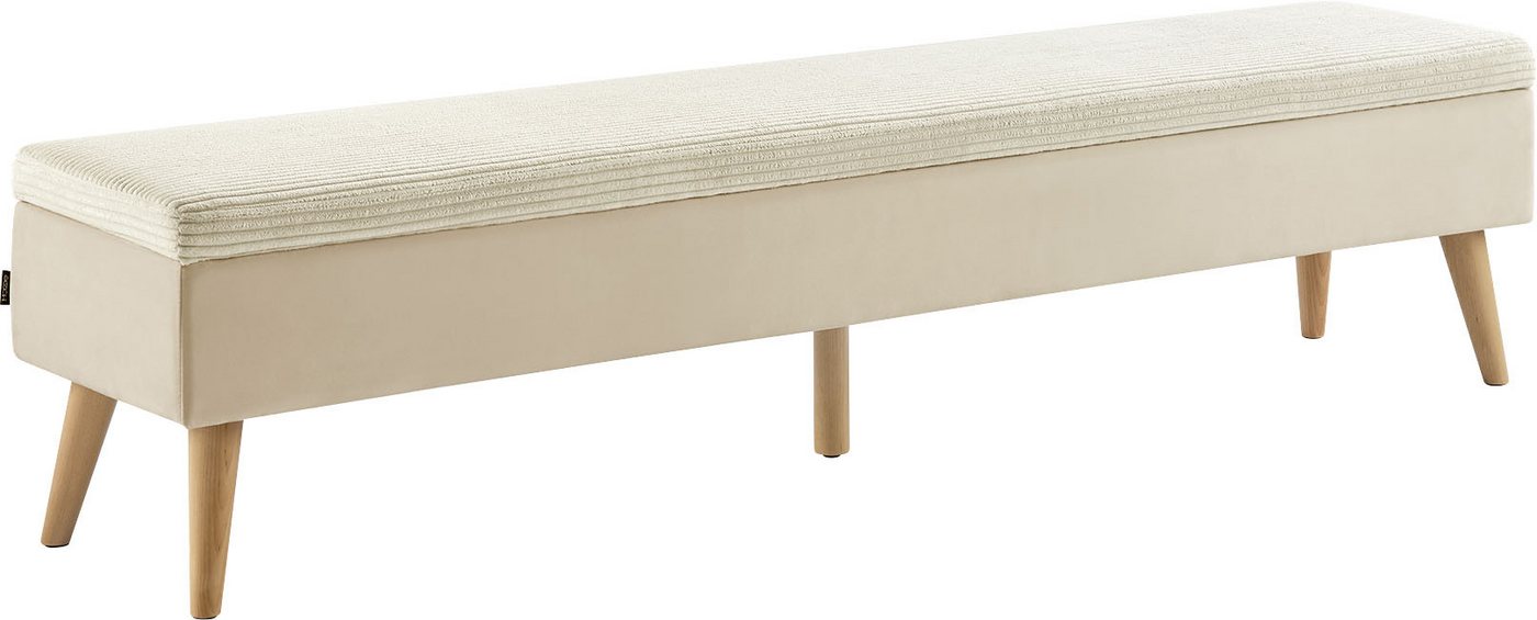 Produktdetails Markeninformationen , Seit 2001 begeistert uns Home affaire mit Landhausmöbeln zum Verlieben. Ob modern, romantisch oder natürlich traditionell – der Fantasie für wunderschönes Einrichten sind kaum Grenzen gesetzt., |Serie , Armandine, | Ausstattung & Funktionen Anzahl Innenfächer , 1 St., | Maßangaben Breite , 180 cm, |Tiefe , 40 cm, |Höhe , 42,5 cm, |Sitzbreite , 180 cm, |Sitztiefe , 40 cm, |Sitzhöhe , 42,5 cm, |Hinweis Maßangaben , Alle Angaben sind ca.-Maße., | Material Bezug , Cord Samt, |Holzart , Eukalyptus Pinie, |Material , FSC®-zertifizierter Holzwerkstoff Polyester, |Material Gestell , Holz teilmassiv Polyester, |Materialhinweis , Das Label des FSC® weist nach, dass Sie mit dem Kauf dieser Produkte vorbildliche Waldwirtschaft – nach den strengen sozialen und wirtschaftlichen Standards des Forest Stewardship Council® – fördern und die Waldressourcen schonen., |Pillingbildung Bezug , 4, |Scheuerbeständigkeit Bezug , 25000 Scheuertouren, | Farbe Farbe , beige, |Farbe Füße , Naturholz, |Farbhinweise , Bitte beachten Sie, dass bei Online-Bildern der Artikel die Farben auf dem heimischen Monitor von den Originalfarbtönen abweichen können., | Lieferung & Montage Aufbauhinweise , einfache Selbstmontage mit Aufbauanleitung, |Lieferzustand , zerlegt, | Product Compliance Geräteart laut ElektroG , Produkt fällt nicht unter das ElektroG., |