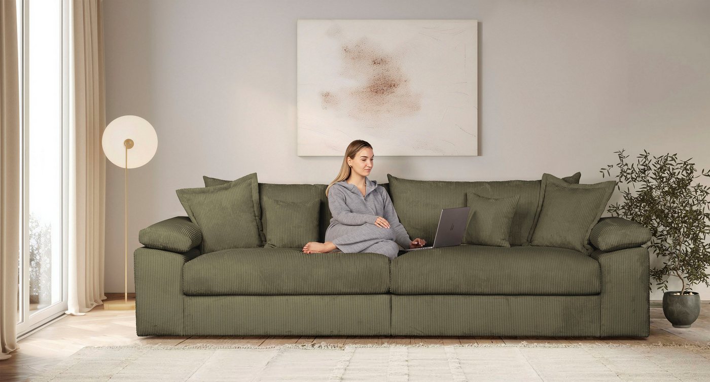 Mit Federkern ausgestattetes Sofa Dieses Big-Sofa »Soft&,Cosy XXL, B: 303 cm – OTTO. Verlässliche Qualität.« von Home affaire ist mit PUR-Schaumstoff gepolstert, der für eine gute Sitzqualität und lange Lebensdauer steht. Was dir auch zu Gute kommt, ist das passende Rückenkissen, die dekorativ und zugleich komfortabel sind. Aus Liebe zum Detail wurde dieses Modell von Hand angefertigt. Klassisch eingerichtetes Wohnzimmer Im klassischen Stil zeigt sich das Modell und wirkt dabei edel und zeitlos zugleich. Zur Inspiration: Große Spiegel, Schränke und Regale aus dunklen Hölzern sowie schicke Akzente durch Kerzenständer passen besonders gut dazu. Mit dem Big-Sofa »Soft&,Cosy XXL, B: 303 cm – OTTO. Verlässliche Qualität.« von Home affaire brauchst du dir keine Gedanken über fehlende Sitzplätze machen.