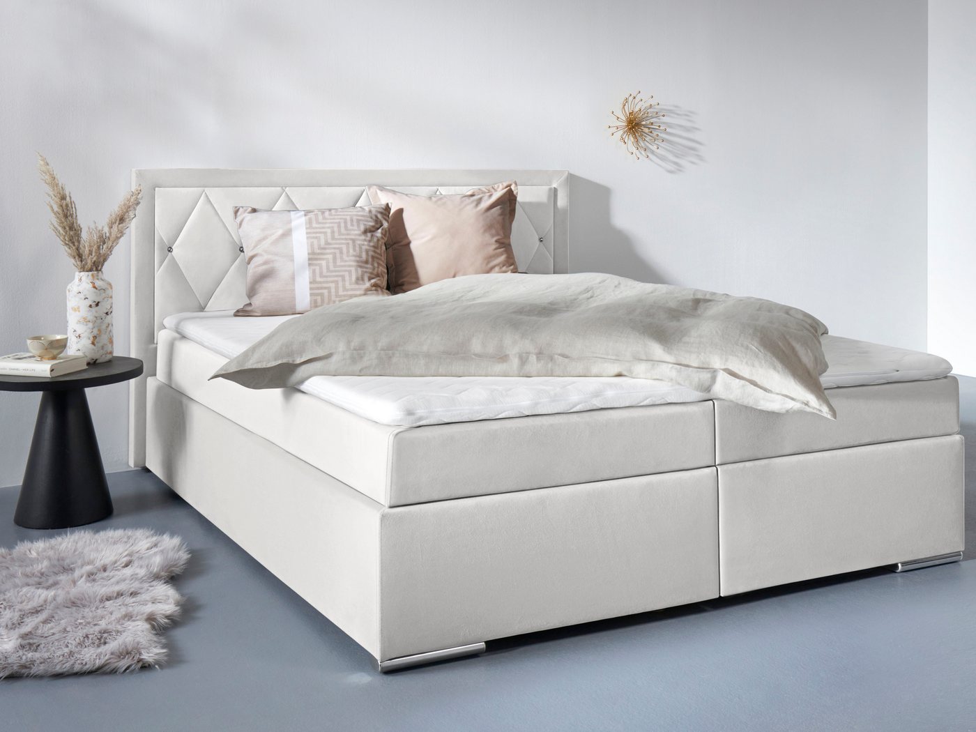 Bett mit Bettkästen Bei diesem Boxbett »Alfie, Bestseller, wahlweise mit Bettkasten« von Leonique hast du dank der praktischen Bettkästen Stauraum für Decken, Laken und Kissen. Das Kopfteil ist 106 cm hoch. Das Montagematerial ist im Lieferumfang enthalten, sodass du dir keine Gedanken um das richtige Werkzeug machen musst. Elemente aus Metall Die Füße aus Metall benötigen nahezu keine Pflege, denn Schmutz oder Staub lassen sich ohne großen Aufwand mit einem feuchten Tuch abwischen. Der Bezug aus Samt ist leicht zu pflegen, denn er ist unempfindlich gegen Schmutz, sodass Flecken nicht so schnell entstehen. Inspirationen für einen klassischen Wohnstil Um den reduzierten Look des modern gestalteten Bettes zu unterstreichen, eignen sich vor allem Elemente in Sand- und Erdtönen. So könntest du dich einrichten: In Kombination mit schimmernden Akzenten würde der zeitlose elegante Look noch besser zur Geltung kommen. Das Produkt ist Bestandteil der Alfie Serie. Auch hiervon kannst du dich beim Einrichten inspirieren lassen. Verwandle das Schlafzimmer zu deinem neuen Lieblingsort — mit dem Boxbett »Alfie, Bestseller, wahlweise mit Bettkasten« von Leonique.