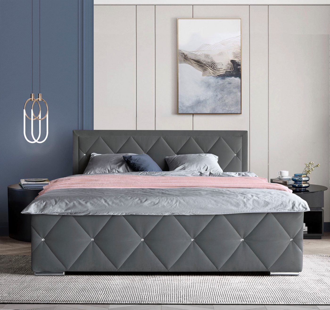 Bett mit Bettkästen Bei diesem Boxbett »Alfie, Topseller! Inkl. Bettkasten&amp,Topper« von Leonique hast du dank der praktischen Bettkästen Stauraum für Decken, Laken und Kissen. Die hochwertige 7-Zonen-Taschen-Federkernmatratze mit einer Höhe von 16 cm stützt mithilfe ihrer Federn und der verschiedenen Liegezonen einzelne Körperpartien ab und sorgt so für einen angenehmen Liegekomfort und erholsamen Schlaf. Mit dem Härtegrad H4 ist sie für ein Körpergewicht bis zu 150 kg geeignet. Auf der Matratze befindet sich ein Visco-Topper mit einer Höhe von 5 cm. Er dient als kuschelige Auflage und schützt gleichzeitig die darunterliegende Matratze. Das Kopfteil ist 106 cm hoch. Bezug aus Samtvelours Das Bettgestell besteht aus modernem Holzwerkstoff und ist daher sehr formstabil und tragfähig. Der Bezug besteht aus Samt — einem angenehm weichen Material, das außerdem edel glänzt. Dein Zuhause im eleganten Stil Im klassischen Stil zeigt sich das Boxbett und wirkt dabei edel und zeitlos zugleich. Zur Inspiration: Schicke Teppiche, polierte Möbeloberflächen und gläserne sowie verspiegelte Details passen perfekt zum exklusiven Wohnstil. Das Produkt ist Bestandteil der Alfie Serie. Auch hiervon kannst du dich beim Einrichten inspirieren lassen. Verwandle das Schlafzimmer zu deinem neuen Lieblingsort — mit dem Boxbett »Alfie, Topseller! Inkl. Bettkasten&amp,Topper« von Leonique.