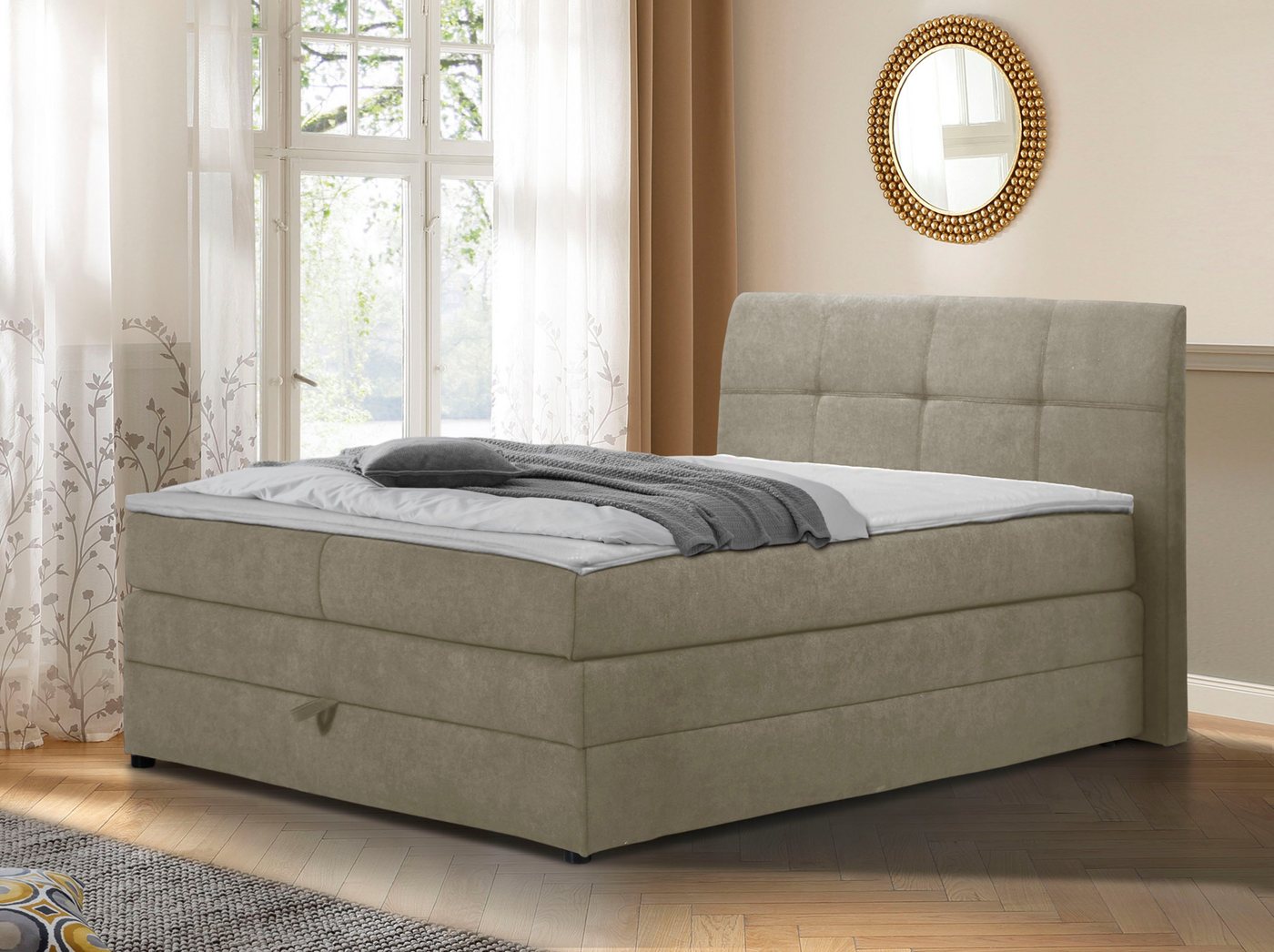 Eine rundum komfortable Erweiterung deiner Schlafzimmereinrichtung ist das 4-teilige Boxspringbett »Finja« von Home affaire mit Komfortliegehöhe. Dieses Bett punktet optisch mit seinem klassisch-zeitlosen Design, das zu vielen Wohnstilen passt. Auf der praktischen Unterbox mit Antirutschausstattung liegt eine bequeme 5-Gang-Bondellfederkernmatratze. Ein hochwertiger Komfortschaum-Topper sorgt für ein entspanntes Liegegefühl. Der Bettkasten ist von der Fußseite aus zu öffnen und bietet dir jede Menge Stauraum beispielsweise für Bettwaren, Kissen oder Decken. Da du aus mehreren Bezugsqualitäten wählen kannst, lässt sich dieses Boxspringbett perfekt in die vorhandene Einrichtung integrieren. Dank Komfortliegehöhe ideal für bequemen Ein- und Ausstieg: ist das 4-teilige Boxspringbett »Finja« von Home affaire mit praktischem Bettkasten.