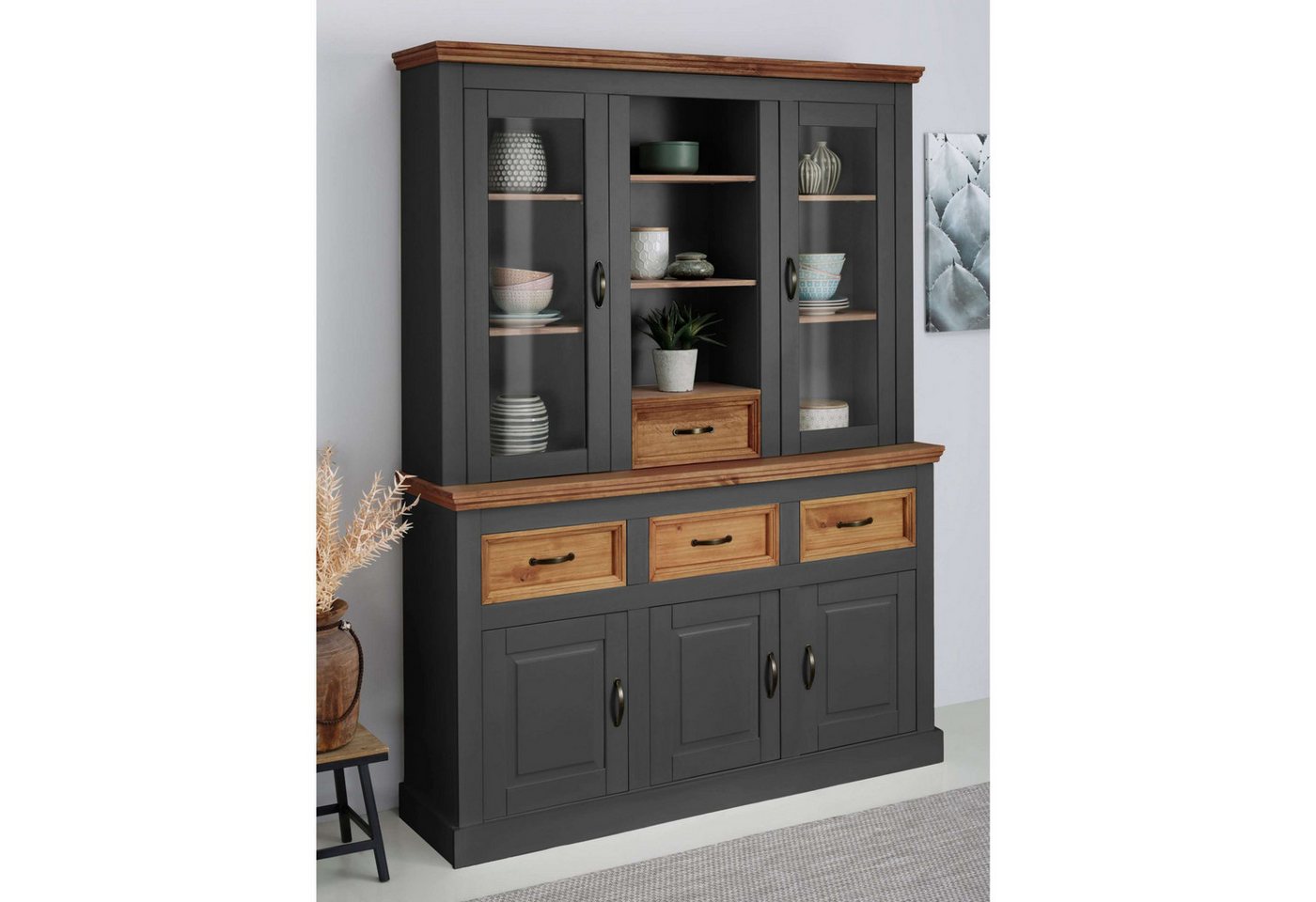 Schrank für Gläser und Geschirr Ob im Wohnzimmer, Schlafzimmer oder Flur — Mit diesem Buffet »Selma« von Home affaire schaffst du mehr Stauraum und Platz für den Fernseher oder schöne Deko-Elemente. Die Schubladen lassen sich komplett ausziehen und bieten dir weitere Unterbringungsmöglichkeiten. Um den Schrank genau auf deine Bedürfnisse auszurichten, sind die Einlegeböden flexibel einsetzbar. Das Wachs auf der Oberfläche macht das Holz unempfindlicher gegen Schmutz und Feuchtigkeit. Die modernen Bügelgriffe aus Metall sind stabil und nutzen sich daher nicht so schnell ab. Belastbar ist dein neues Möbelstück mit bis zu 150 Kilogramm. Wohnen im Landhaus-Stil Rustikal und gemütlich zugleich — das Buffet im Landhausstil lässt sich gut mit naturbelassenen Hölzern und natürlichen Stoffen wie Leinen, Baumwolle oder Flachs kombinieren. Dekorieren kannst du unter anderem mit Porzellan- oder Tonelementen, um das zwanglose Landhaus-Flair zu unterstreichen. Er ist Bestandteil der Serie Selma. Von dieser kannst du dich beim Einrichten inspirieren lassen. Macht dein Wohnzimmer komplett: das Buffet »Selma« von Home affaire!