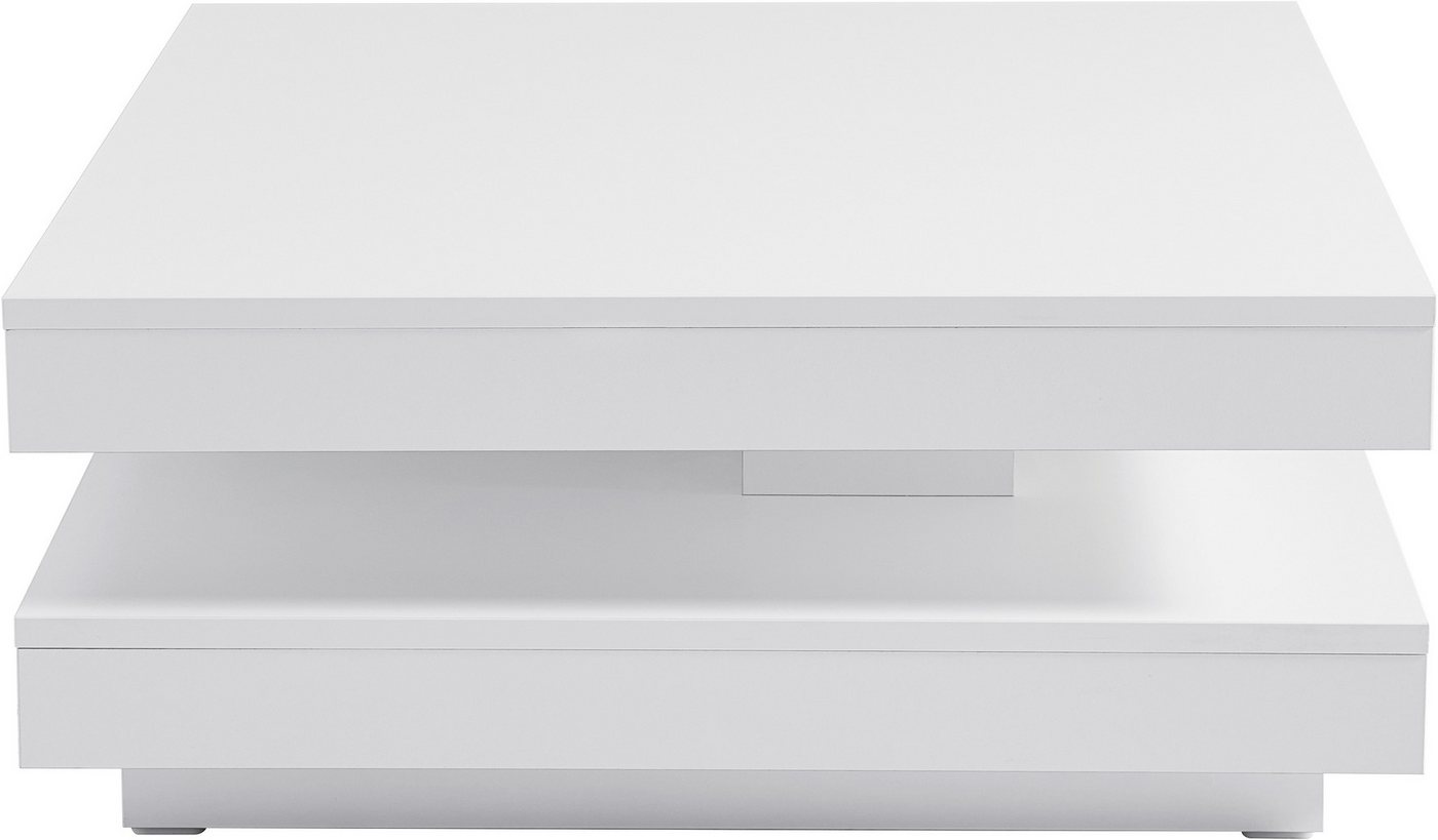 Ein Schmuckstück im Wohnzimmer mit überzeugenden Eigenschaften: Der Couchtisch mit drehbarer, quadratischer Tischplatte punktet mit ansprechendem Design. Harmonisch fügt er sich mit der ansprechenden Beschichtung in die vorhandene Einrichtung ein. Dabei ist der Tisch in unterschiedlichen Farben erhältlich und lässt sich mühelos in die jeweiligen Wohnkonzepte integrieren. Für die gemütlichen Stunden daheim ist er eine willkommene Bereicherung. Unter der drehbaren Tischplatte befindet sich eine weitere mit gleicher Tiefe, die eine zusätzliche Ablagefläche für die Fernbedienung oder die Programmzeitschrift bietet. Ein optisches Highlight im Zuhause: der Couchtisch mit einer um 360° drehbaren Tischplatte.