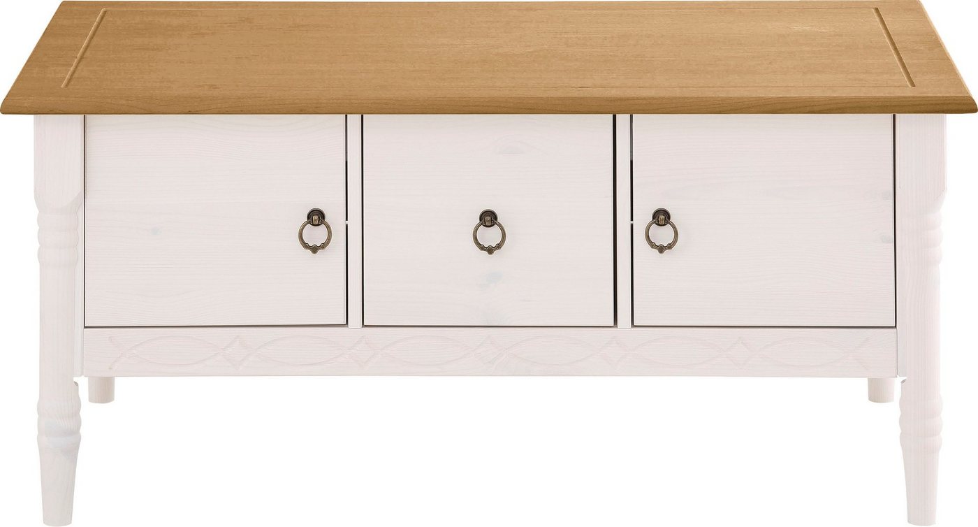 Ein wunderbares Möbel, das begeistert: der Couchtisch im Landhausstil »Indra« von Home affaire. In hochwertiger Verarbeitung, toller Qualität und mit integriertem Stauraum wird er gleich mehrere Wohnwünsche erfüllen. Gefertigt ist der Sofatisch aus FSC®-zertifiziertem Massivholz. Er erweist sich als pflegeleicht und lässt sich mit einem fusselfreien Tuch leicht sauber halten. Dekorative Fräsungen, die stilvollen Griffe und die leicht rustikale Form verleihen ihm einen besonderen Charme, von dem der ganze Raum profitieren wird. Eine tolle Einrichtungsidee, die lange Freude machen wird: der Home affaire Couchtisch im Landhausstil »Indra«.