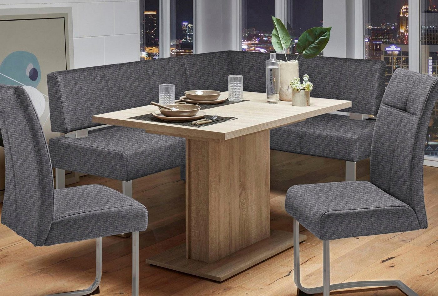 Mit einem zeitlosen Design begeistert diese schicke Eckbank. Als gemütliche Sitzgelegenheit für Familie und Freunde findet das bequeme Möbelstück, mit Rücken- und Sitzpolsterung, freistehend oder im Eck platziert, im Wohn- und Essbereich seinen geeigneten Platz. Ob als gemütliche Sitzecke drapiert oder als Essplatz, kombiniert mit einem großen Esstisch: die Eckbank überzeugt mit vielen Einsatzmöglichkeiten und besonderem Komfort. Das, aus FSC®-zertifiziertem Massivholz gefertigte, Mobiliar glänzt mit einem klassischen Erscheinungsbild, das sowohl in moderne, als auch rustikale Wohnkonzepte eingefügt werden kann. Eine stilvolle Eckbank, mit der gesellige, gemeinschaftliche Stunden an der Tagesordnung stehen und mit der ein familiäres Wohnambiente gestaltet wird.
