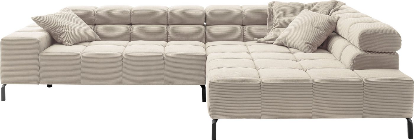 Sofa mit Wellenunterfederung Eine dauerhaft elastische und komfortable Sitzfläche — das bekommst du bei diesem Ecksofa »Ancona New, wahlweise motorische Sitztiefenverstellung, auch in Cord« von Home affaire, das mit einer hochwertigen Wellenunterfederung ausgestattet ist. Beim Ecksofa befindet sich die Recamiere, von vorne betrachtet, auf der rechten Seite. Die mattschwarzen Füße aus Metall benötigen nahezu keine Pflege, denn Rückstände, Schmutz oder Staub lassen sich ohne großen Aufwand mit einem feuchten Tuch abwischen. Aus Liebe zum Detail wurde dieses Modell von Hand angefertigt. Wohnzimmer im modernen Stil Um die Möbelstücke im Vintage-Stil mit der restlichen Raumeinrichtung in Einklang zu bringen, eignen sich Deko-Artikel mit Gebrauchsspuren oder gewollten Schönheitsfehlern, die einen Hauch Nostalgie verbreiten. Ausgefallene Muster, runde Formen und kräftige Farben sorgen nicht nur für gute Laune, sondern schaffen auch dein persönliches Retro-Paradies. Platz für alle — das Ecksofa »Ancona New, wahlweise motorische Sitztiefenverstellung, auch in Cord« von Home affaire.