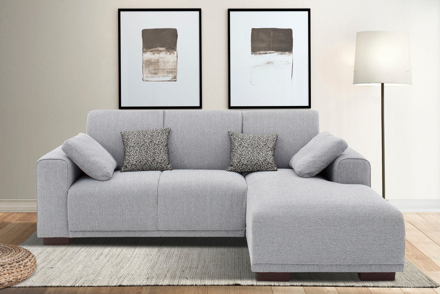 Entspannen und wohlfühlen: Diese bequeme Polsterecke »Bornholm« von Home affaire überzeugt durch ihre moderne Funktionalität. Die komfortable Wellenunterfederung mit atmungsaktiver Polyätherschaum-Polsterung und die angenehme Sitzhöhe laden zum Erholen ein. Stabilität im Sitzen und Liegen bietet das robuste Holzuntergestell. Wahlweise mit Récamiere rechts oder links lässt sich das Ecksofa ideal an die räumlichen Verhältnisse anpassen und ist frei im Raum stellbar. Für einen Hauch Landhausfeeling sorgen die länglichen Füße und der weiche Strukturstoff. In verschiedenen Farbvarianten erhältlich fügt sich das Polstermöbel aus FSC®-zertifiziertem Holzwerkstoff gekonnt in verschiedene Einrichtungsstile ein. Eine Atmosphäre zum Ausspannen: Die bequeme Polsterecke »Bornholm« von Home affaire bereichert jeden Wohnraum.