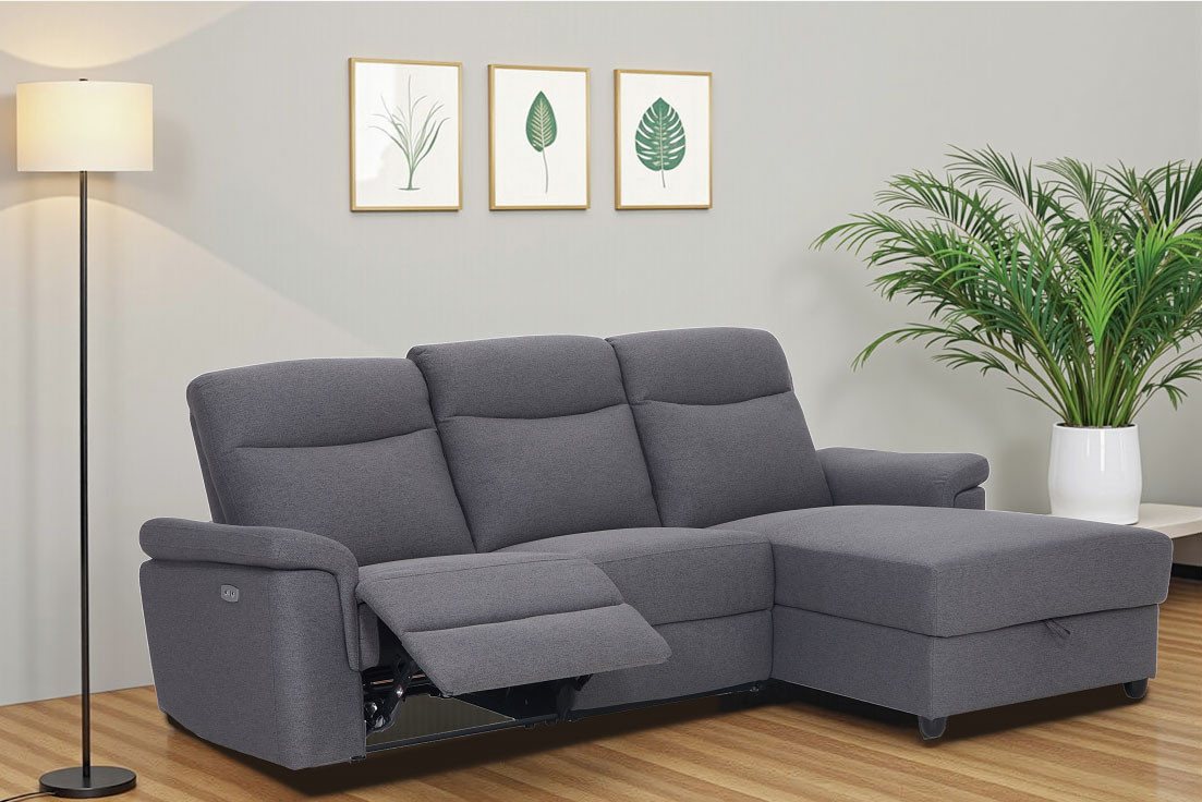 Sofa mit Federkern Die Gurtunterfederung dieses Ecksofas »BRIONNE, L-Form, 255cm, manuelle u. elektrische Funktion (USB A/C),« von Home affaire sorgt mit ihren elastischen Gurten für einen hohen Sitzkomfort und unterstützt seine weiche, legere Polsterung. Es ist stufenlos verstellbar, sodass du es in eine für dich angenehme Position bringen kannst. Von vorne betrachtet ist die Recamiere nach rechts ausgerichtet. Belastbar ist dein neues Möbelstück bis zu 110 Kilogramm. Der Webstoff ist robust und zeigt sich mit seinen verwebten Fäden in einer feinen und ebenmäßigen Oberfläche. Modern eingerichtetes Wohnzimmer Du fragst dich, wie sich das Möbelstück kombinieren lässt? Hier eine kleine Inspiration für dich: Die Ästhetik des modernen Stils ist reduziert und strahlt eine schlichte Eleganz aus. Indem du die Dekoration in dezenten Farben wie Weiß oder Grau hältst und dich aufs Wesentliche fokussierst, hebst du den Stil noch besser hervor. Mit dem Ecksofa »BRIONNE, L-Form, 255cm, manuelle u. elektrische Funktion (USB A/C),« von Home affaire findet jeder einen kuscheligen Platz.