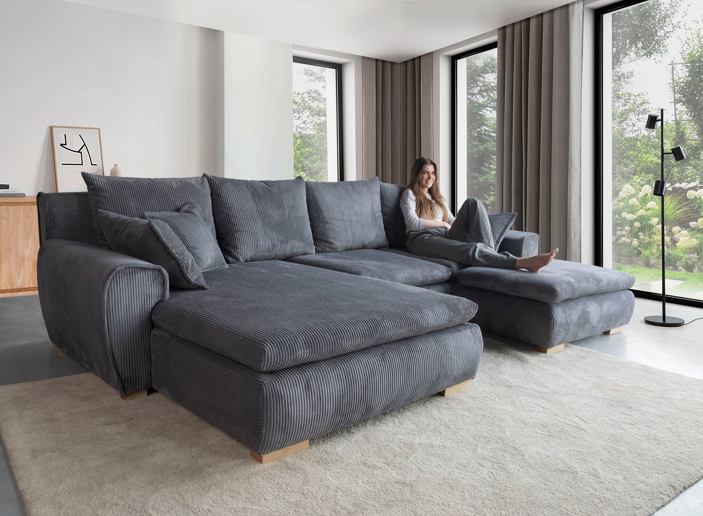 Ecksofa Cara Mia L-Form mit Komfort-Wellenunterfederung – Breite 325 cm, Cord-Stoff