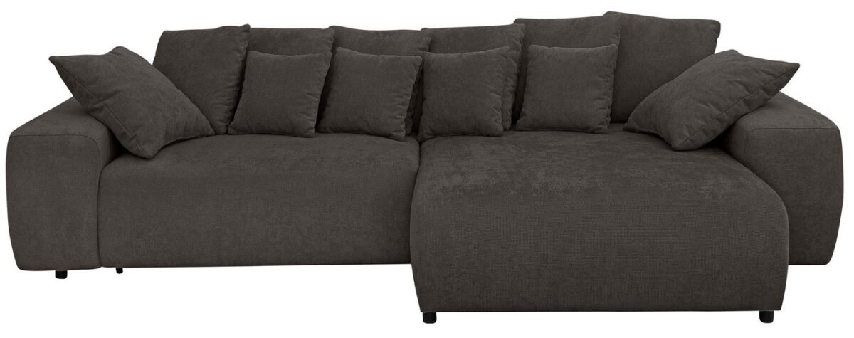Für mehr Komfort im Wohnzimmer sorgt das bequeme Ecksofa »Riveo Luxus« von Home affaire. Das Sofa im modernen Stil erweist sich als optische Bereicherung für jeden Einrichtungsstil. Neben der Optik passt die Qualität ebenfalls, denn die Eckcouch ist hochwertig verarbeitet und umfangreich ausgestattet. Unter anderem zeichnet sich das Sofa durch einen widerstandsfähigen Kaltschaum aus, der eine punktelastische Dämpfung sowie eine lange Lebensdauer aufweist. Dazu verfügt das Sofa auch noch über eine Wellenunterfederung, wodurch maximaler Komfort gegeben ist. Die dekorativen Zier- und Rückenkissen gehören zum Lieferumfang. Verführt zum Entspannen und Relaxen: das bequeme Ecksofa »Riveo Luxus« von Home affaire.