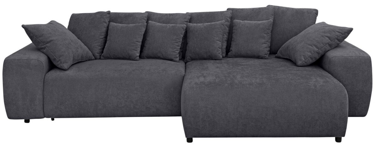 Für mehr Komfort im Wohnzimmer sorgt das bequeme Ecksofa »Riveo Luxus« von Home affaire. Das Sofa im modernen Stil erweist sich als optische Bereicherung für jeden Einrichtungsstil. Neben der Optik passt die Qualität ebenfalls, denn die Eckcouch ist hochwertig verarbeitet und umfangreich ausgestattet. Unter anderem zeichnet sich das Sofa durch einen widerstandsfähigen Kaltschaum aus, der eine punktelastische Dämpfung sowie eine lange Lebensdauer aufweist. Dazu verfügt das Sofa auch noch über eine Wellenunterfederung, wodurch maximaler Komfort gegeben ist. Die dekorativen Zier- und Rückenkissen gehören zum Lieferumfang. Verführt zum Entspannen und Relaxen: das bequeme Ecksofa »Riveo Luxus« von Home affaire.