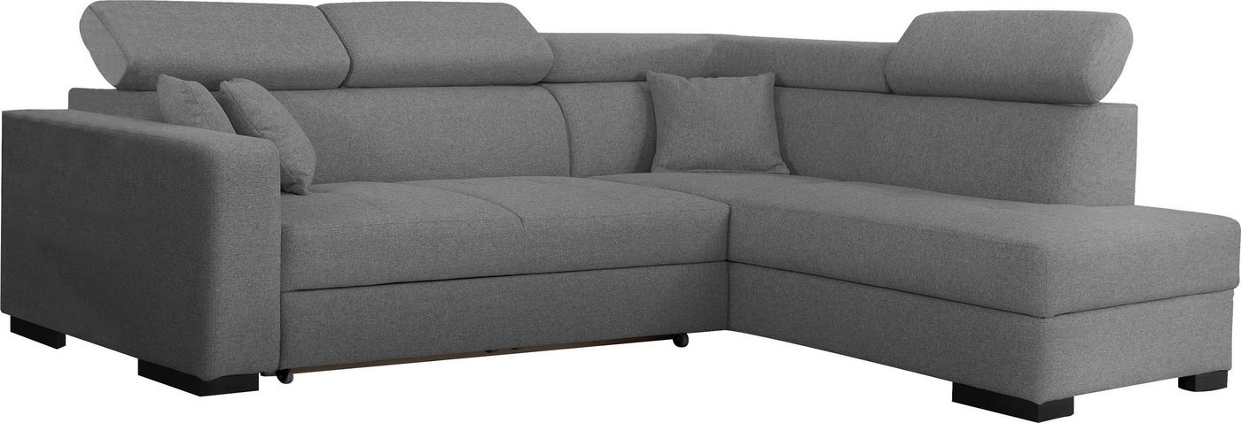 Ein optisches Highlight für deinen Wohnbereich ist das Ecksofa »Tulio« von Home affaire inklusive komfortabler Kopfstützen. Du stellst es wahlweise frei im Raum auf, wobei die Recamiere für links oder rechts zur Verfügung steht. Das Gesamtpaket umfasst dekorative Zierkissen. Zu den wichtigen Ausstattungsmerkmalen zählen die Schaumpolsterung sowie eine integrierte Wellenunterfederung, die zum Sitzkomfort beitragen. Individuelle Einrichtungsideen werden durch die verschiedenen Bezugsqualitäten und attraktive Farbvariationen eröffnet. Optional ist die Polsterecke mit Bettfunktion und Bettkasten erhältlich. Setze einen reizvollen Akzent in deinem Zuhause mit dem Ecksofa »Tulio« von Home affaire mit bequemen Kopfstützen.