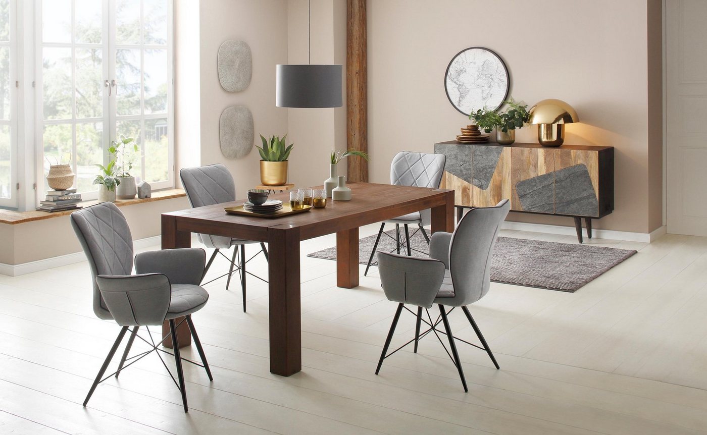 Produktdetails Produktdetails , bestehend aus 4 Viola Armlehnstühlen und dem Maggie Akazienholz Esstisch, Stühle mit einem Gestell aus schwarzen Metallbeinen und Webstoff, Tischbeine 12/12 cm, Gesamtmaße des Viola Stuhl (B/T/H): ca. 63/62/91, Stuhl Sitzhöhe 49 cm, Sitztiefe 45 cm, |Markeninformationen , Seit 2001 begeistert uns Home affaire mit Landhausmöbeln zum Verlieben. Ob modern, romantisch oder natürlich traditionell – der Fantasie für wunderschönes Einrichten sind kaum Grenzen gesetzt., |Funktionen , mit Armlehne, | Maßangaben Breite , 180 cm, |Tiefe , 90 cm, |Höhe , 74 cm, | Material Material , Metall, |Holzart , Eiche, |Bezug , Webstoff, | Farbe Farbe , akazie hellgrau, | Serie Serie , Gimbi, | Hinweise Hinweis Maßangaben , Alle Angaben sind ca.-Maße., |Pflegehinweise , Bitte beachten Sie die Pflegehinweise gemäß dem beiliegenden Produkt- und Materialpass. pflegeleicht, |Aufbauhinweise , einfache Selbstmontage mit Aufbauanleitung, |