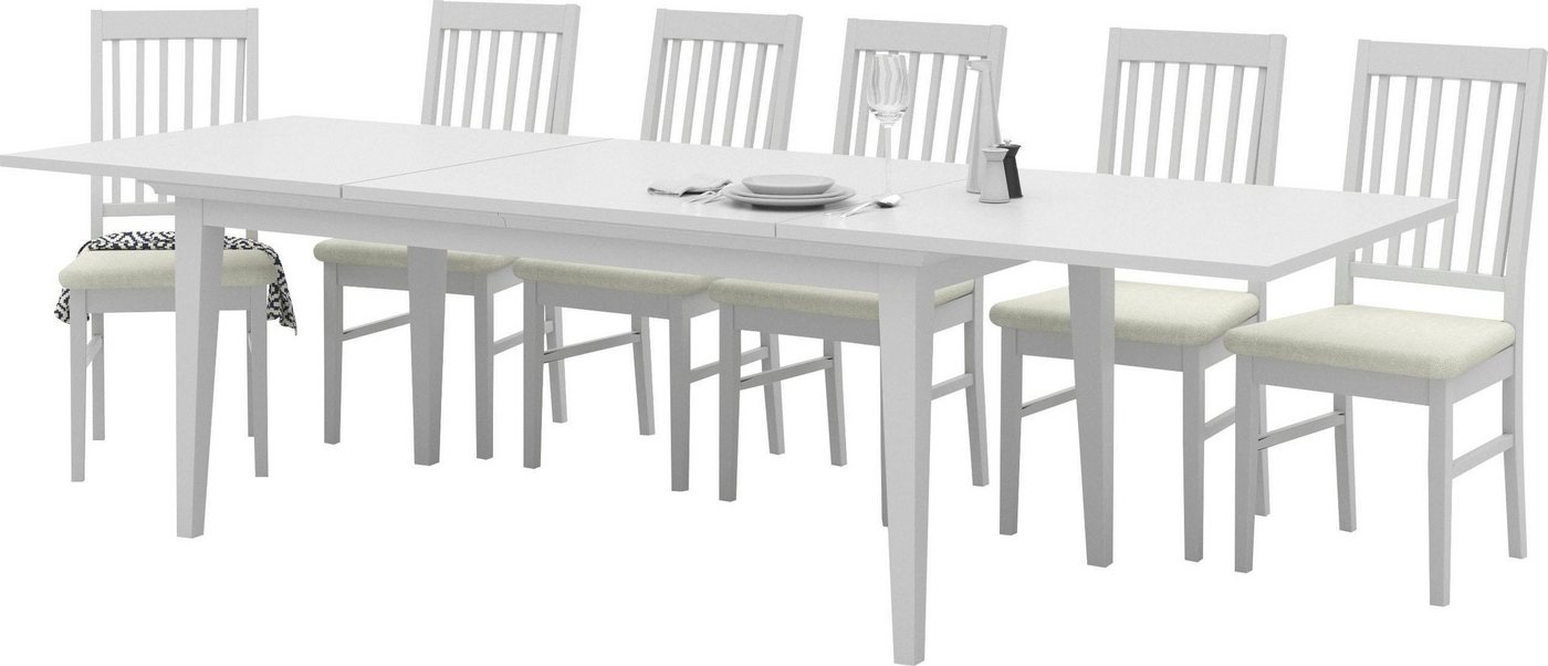 Der verlängerbare Esstisch »Paris« von Home affaire beeindruckt im eleganten Landhaus-Stil. Seine filigrane Form fügt sich harmonisch in nahezu jeden Wohnstil ein. Für die Fertigung verwendet der Hersteller einen hochwertigen Holzwerkstoff aus MDF, welcher FSC®-zertifiziert ist. Der Esszimmertisch ist mit einer pflegeleichten Oberfläche versehen, die für hohe Alltagstauglichkeit sorgt. Bei Bedarf ist eine Erweiterung der Tischfläche mit separat erhältlichen Ansteckplatten möglich. Der Tisch kann im Wohnzimmer, Arbeitszimmer, der Veranda oder der Küche nützliche Dienste leisten. Mit dem verlängerbaren Esstisch »Paris« von Home affaire erhält jede Einrichtung eine geschmackvolle Ergänzung. Seit 2001 begeistert uns Home affaire mit Landhausmöbeln zum Verlieben. Ob modern, romantisch oder natürlich traditionell – der Fantasie für wunderschönes Einrichten sind kaum Grenzen gesetzt. Der Einsatz von zertifiziertem nachhaltigem Holz, von natürlichen Materialien und geprüften Textilien ist seit Beginn an Teil der Markenphilosophie.