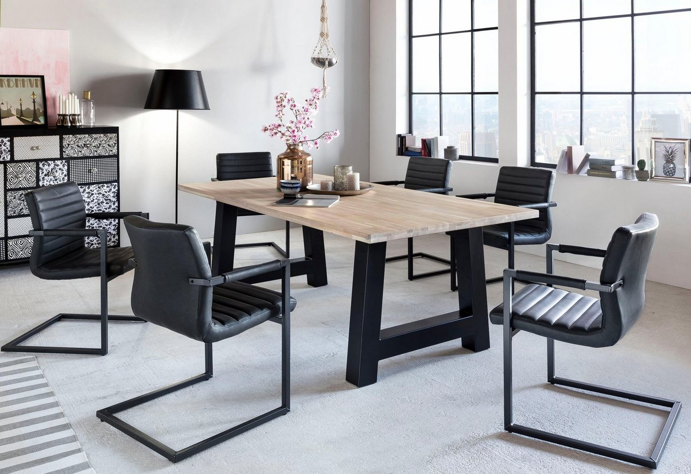 Der moderne Home affaire Esstisch »Miami Beach« aus massiver Eiche mit einem Metallgestell in A-Form liegt voll im Trend und setzt besondere Akzente im Wohn- und Essbereich. Besonders fällt die weiß lasierte Tischplatte ins Auge, die für eine freundliche und helle Raumatmosphäre sorgt. Die Tischplatte aus FSC®-zertifiziertem Massivholz bietet einen tollen Kontrast zum Metallgestell. Ein ansprechender Materialmix, der zum Blickfang im modernen Wohnkonzept wird. Durch seine pflegeleichten Oberflächen ist dieses naturbelassene Esszimmermöbel leicht zu reinigen. Für ein hochwertiges Wohnambiente: der moderne Home affaire Esstisch »Miami Beach« aus massiver Eiche mit einem Metall Gestell in A-Form.