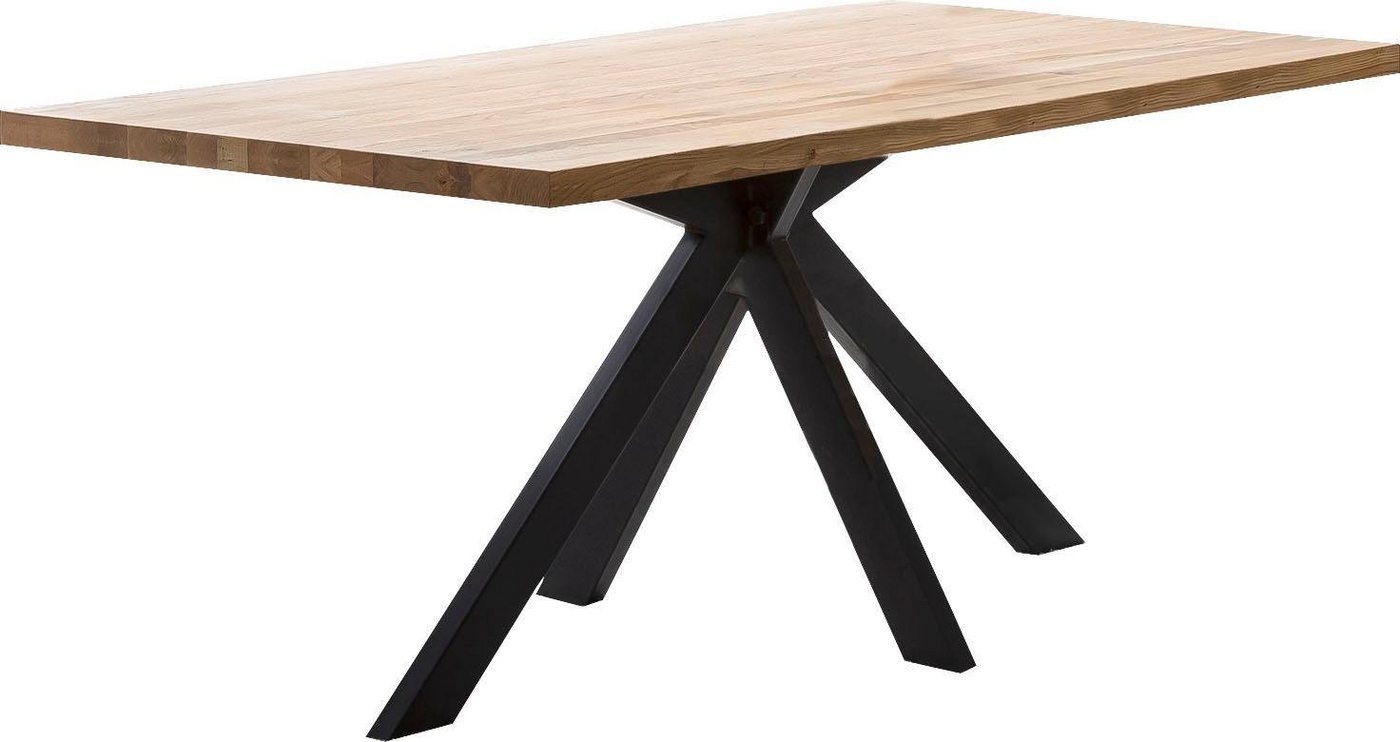 Blickfang mit einem über Kreuz verlaufenden Metallgestell: der Esstisch »New York« von Home affaire setzt einen attraktiven Akzent im Essbereich. Der Materialmix betont die stilvolle Optik, da die Tischplatte aus massiven Eichenbalken mit einer gut sichtbaren Maserung gefertigt ist. Das Esszimmermöbel in klassischer Rechteckform ist in verschiedenen Größen erhältlich. Ideale Voraussetzungen, um den vorhandenen Platz optimal zu nutzen und der Familie ausreichend Platz am Tisch zu bieten. Er ist vielseitig kombinierbar, um ein individuelles Ambiente zu realisieren. Interpretiert den traditionellen Landhausstil auf eine moderne Art: der Esstisch »New York« von Home affaire mit einem Gestell im auffälligen Spider-Look.