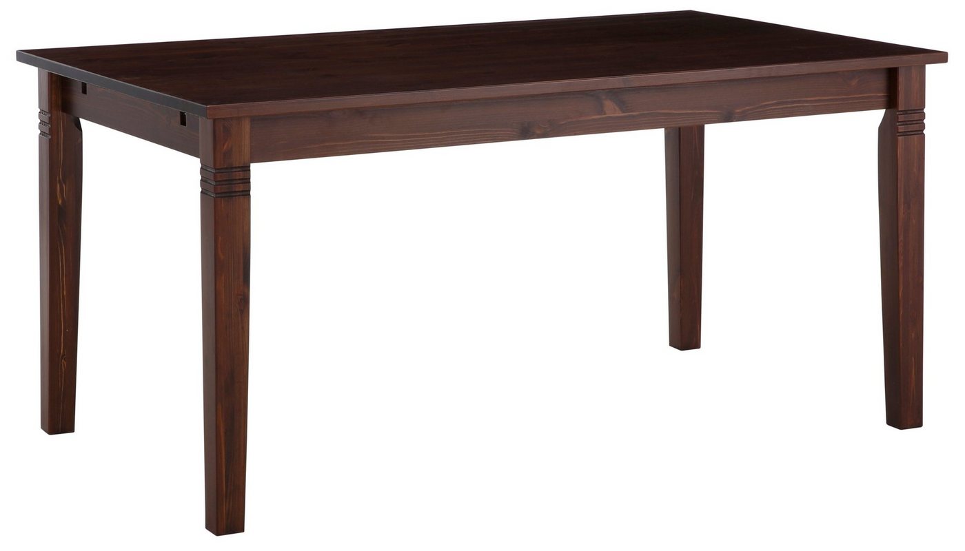 Formschön, stabil und dazu praktisch: So zeigt sich der schöne Esstisch der Marke Home affaire. Er kann durch 2 Ansteckplatten erweitert werden, sodass auch in großen Familien oder bei mehr Gästen jeder einen Platz findet. Für die kleinere Runde ist der Ausziehtisch ebenfalls eine tolle Lösung für den Essbereich – er sieht gut aus und harmoniert durch seinen dezenten Look gekonnt mit verschiedenen Einrichtungsstilen. Als ein Plus erweist sich außerdem der Schubkasten, in dem sich Servietten oder auch Kerzen unterbringen lassen. Hergestellt ist das Esszimmermöbel aus FSC®-zertifiziertem Massivholz – das Holz stammt aus vorbildlich bewirtschafteten Wäldern. Zweckmäßig und in verschiedenen Größen erhältlich: der schöne Esstisch von Home affaire. Die passende Ansteckplatte in dunkelbraun oder natur geölt finden Sie unter den Artikelnummern 460376 und 460459.