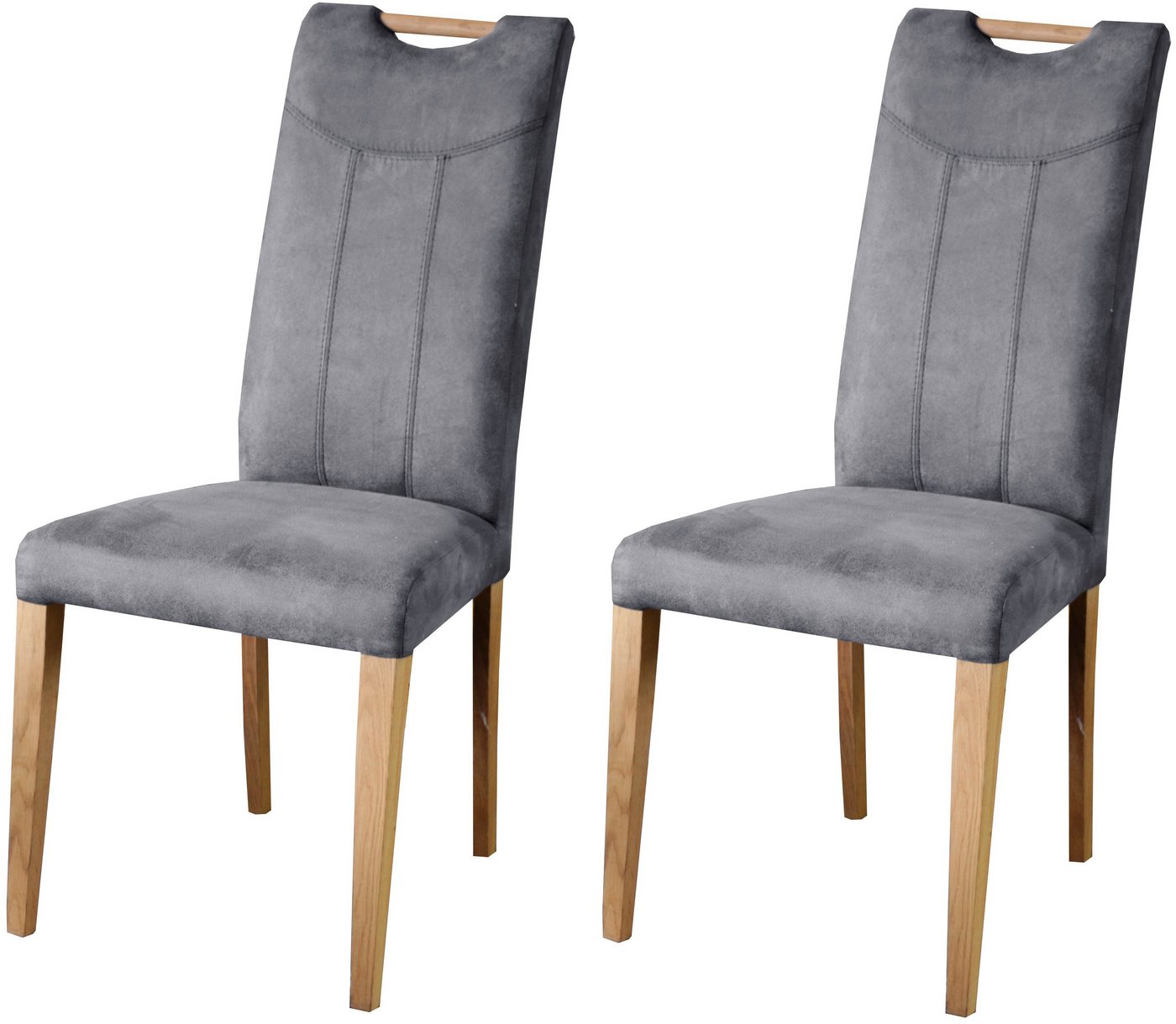 Das klassische Design der Stühle »Roberta« überzeugt. Das Set enthält zwei Modelle. Zeitloses Design und hohe Komfortabilität sind die Stichworte, die diese Esszimmerstühle beschreiben. Geöltes Eichenholz bildet die Stuhlbeine und das Gestell. Dieses Massivholz ist FSC®-zertifiziert und entstammt somit vorbildlicher Waldwirtschaft. In den Sitz sind Polstergurte eingebaut, die für eine solide Unterfederung sorgen. Sitz und Rücken sind zudem gepolstert. Bezogen ist die Sitzgelegenheit mit strapazierfähigem Microfaser. Ein toller Esszimmerstuhl, auf dem man gerne länger sitzt: Das Stuhlset »Roberta« Stuhl aus FSC zertifizierter Eiche geoelt im zeitlosen Design mit Griff in den Rücken. Der Stuhl ist 47 cm breit, 61 cm tief und 99 cm hoch, die Sitzhöhe ist 47 cm und Sitztiefe 43 cm. Der Stuhl ist bezogen mit strapazierfähiger Microfaser in mehreren Farben und hat eine tolle Optik. Alle Maße sind ca.-Maße. Produkt kommt aufgebaut.