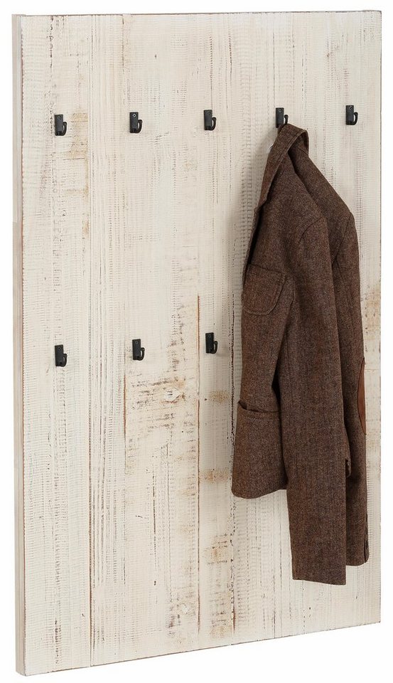 Eine extravagant reizvolle Einrichtungsidee für den Dielenbereich: das Garderobenpaneel »Santo« von Home affaire. Die mit praktischen Kleiderhaken versehene Verkleidung punktet optisch durch die aufwendig per Wischtechnik bearbeitete Oberfläche. Zur Wahl stehen aparte Farbvarianten. In Kombination mit der natürlichen Holzstruktur entsteht eine tolle Gesamtoptik. Beinahe zu schön, um Kleidungsstücke an den Haken aufzuhängen. Hergestellt wird das Wandpaneel aus FSC®-zertifiziertem Kiefernmassivholz. Mit dem reizvollen Garderobenpaneel von Home affaire gelingt es, in jedem Eingangsbereich einen extravaganten Akzent zu setzen.