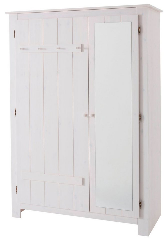Garderobenschrank aus massivem Kiefernholz Ein stabiler und langlebiger Begleiter: Dieser Garderobenschrank »Bertram« von Home affaire aus Massivholz sorgt für ein natürliches Wohnambiente und wird dir dank der hochwertigen Ausführung lange Freude bereiten. Das Modell lässt sich außerdem genau auf dich und deine Einrichtung anpassen, denn der Türanschlag kann entweder rechts oder links montiert werden. Das Wachs auf der Oberfläche sorgt für einen seidigen Glanz. Das Holz bleibt dabei trotzdem atmungsaktiv. Die Griffe sind stabil und nutzen sich daher nicht so schnell ab. Wohnen mit ländlichem Charme Den gemütlichen Landhausstil des Garderobenschranks in der Inneneinrichtung nochmal aufzugreifen oder zu unterstreichen ist gar nicht schwer: Das Holz passt gut zu anderen Naturmaterialien und zarten Farben wie Creme, Beige oder Grau. Auflockernde Farbtupfer können beispielsweise mit Deko-Elementen wie bunten Vasen oder Kerzen eingebracht werden. Er ist Teil der Bertram Serie. Weitere Artikel hieraus lassen sich besonders gut dazu kombinieren. Einzigartig, robust und langlebig: der Garderobenschrank »Bertram« von Home affaire.