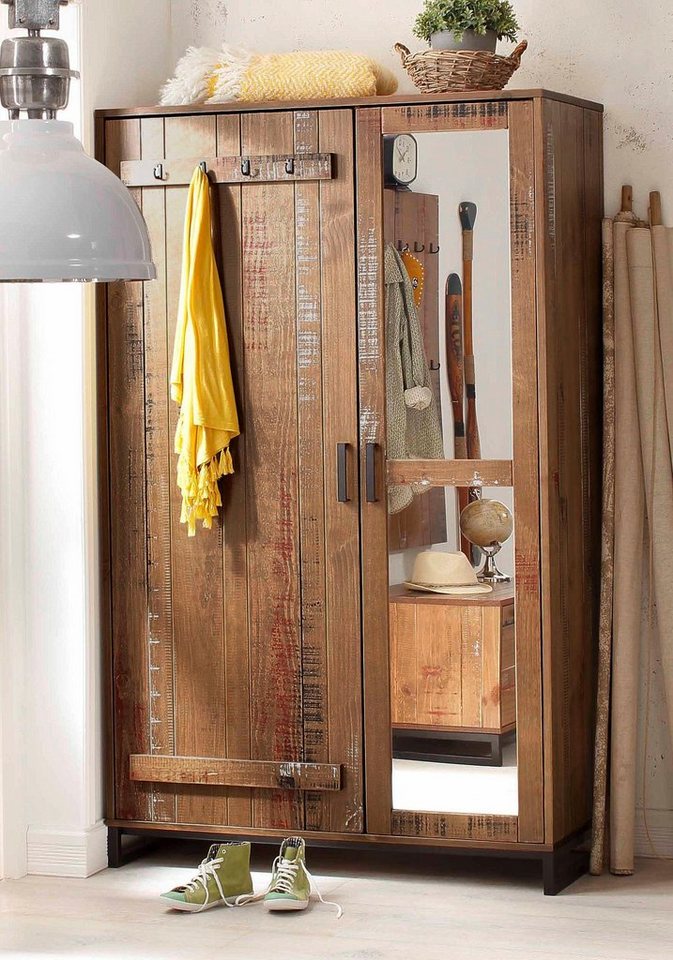 Visuell sehr ansprechend und überdies äußerst zweckmäßig – so präsentiert sich der Garderobenschrank »Santo« der Marke Home affaire. Er ist aus FSC®-zertifizierter, massiver Kiefer gefertigt und zeigt sich so als ein solides Möbelstück. Er hat eine Holztür, hinter der sich ein Ablageboden und eine Kleiderstange befinden. Hinter der Tür mit Spiegel verbergen sich mehrere Fächer für die zusätzliche Unterbringung der Kleidung. Das Untergestell des Dielenschranks ist aus Metall – eine schöne Kombination mit dem edlen Holz des oberen Teils. In mehreren Farbausführungen erhältlich und immer ein attraktives Möbelstück: der Garderobenschrank »Santo« von Home affaire.