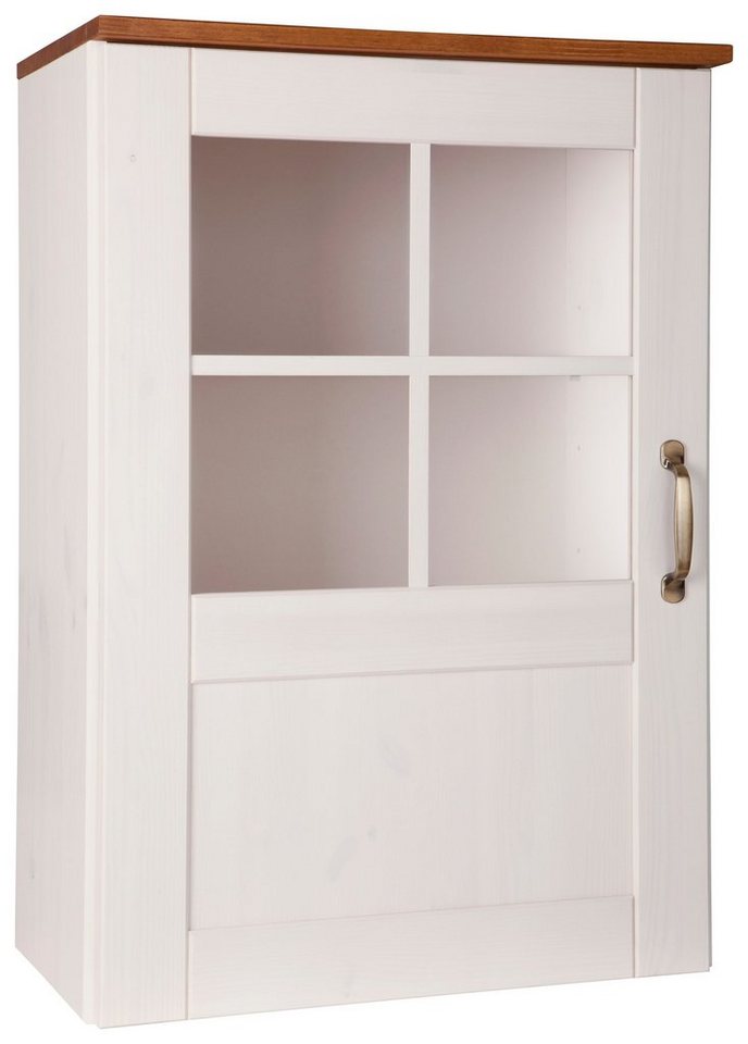 Dieser Hängeschrank »Alby« im Landhausstil aus dem Sortiment von Home affaire überzeugt als attraktives Küchenmöbel. Es lässt sich gut mit anderen Farben und Dekorationen sowie Möbeln kombinieren. Verantwortlich ist dafür vor allem die Zusammenführung von Glaselementen, einem metallenen Griffstück sowie der farblich abgesetzten Oberplatte. So entsteht ein schicker Gesamtlook, der in nahezu jedes Raumkonzept passt. Im Inneren befindet sich dank der Ablegeböden viel Stauraum, um Gläser, Teller oder Tassen unterzubringen. Gefertigt ist das Möbelstück aus FSC®-zertifiziertem Holzwerkstoff. Der Hängeschrank »Alby« im Landhausstil von Home affaire wertet jede Küche optisch sowie funktional auf.