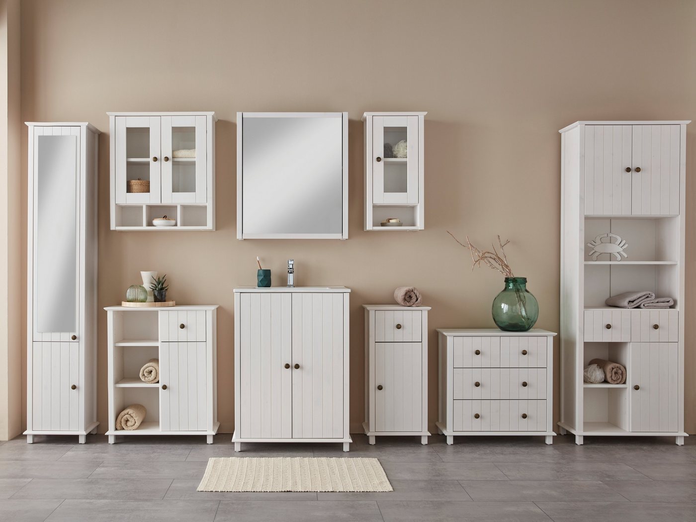 Schrank aus Massivholz Dieser Hängeschrank »Vili« von Home affaire ist aus massivem Holz gefertigt und schafft damit nicht nur Ordnung, sondern auch eine angenehm natürliche Atmosphäre in deinen vier Wänden. Maximale Flexibilität bieten dir die variabel einsetzbaren Einlegeböden. Dadurch bleibt es dir überlassen, wie hoch die einzelnen Fächer sein sollen. Um die Oberfläche etwas unempfindlicher gegen Verschmutzung zu machen, ist es gewachst. Das verleiht ihm zudem einen leichten Glanz. Die Griffe aus Metall sind langlebig und unterstreichen den Stil. Hergestellt wurde das Produkt in Europa. Klassisch Wohnen Den gemütlichen Landhausstil des Hängeschranks in der Inneneinrichtung nochmal aufzugreifen oder zu unterstreichen ist gar nicht schwer: Das Holz passt gut zu anderen Naturmaterialien und zarten Farben wie Creme, Beige oder Grau. Auflockernde Farbtupfer können beispielsweise mit Deko-Elementen wie bunten Vasen oder Kerzen eingebracht werden. Er ist Bestandteil der Serie Vili. Von dieser kannst du dich beim Einrichten inspirieren lassen. Hol dir ein hochwertiges Holz-Möbelstück nach Hause — mit dem Hängeschrank »Vili« von Home affaire.