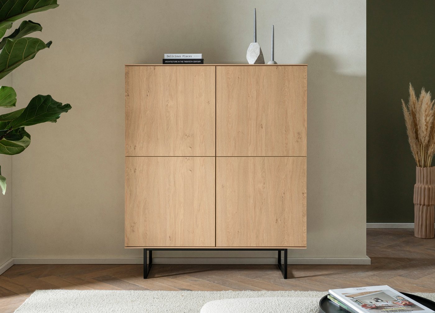 Neues Highboard gesucht? Mit diesem Highboard »Lund, moderner Schrank, Kommode mit Kufengestell« von Home affaire gewinnst du wertvollen Stauraum und kannst kleine und große Deko-Schätze angemessen präsentieren. Aus Holzwerkstoff hergestellt, erhält das Sideboard eine besonders stabile Struktur. In Europa wurde das Produkt hergestellt. Modern und urban Das Highboard präsentiert sich im zeitlosen und modernen Look, der vielseitig kombinierbar ist. Um Akzente zu setzen, eignen sich beispielsweise farbige Vasen gut, die entweder mit Blumen oder auch mit bunten Lichterketten dekoriert werden können. Es ist Teil der Lund Serie. Weitere Artikel hieraus lassen sich besonders gut dazu kombinieren. Macht dein Wohnzimmer komplett: das Highboard »Lund, moderner Schrank, Kommode mit Kufengestell« von Home affaire!