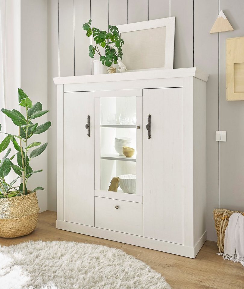 Attraktives Sideboard für noch mehr Stauraum Für zusätzlichen Platz im Wohn-, Ess- oder Schlafbereich: Dieses Highboard »RAVENNA« von Home affaire ist ein flexibel einsetzbares Möbelstück, das sich ganz nach deinen Vorstellungen platzieren und dekorieren lässt. Die Griffe aus Metall sind langlebig und unterstreichen den Stil. In Europa wurde das Produkt hergestellt. Dank der Aufbauanleitung kannst du die Montage selbst vornehmen. Lange Freude durch die richtige Pflege: Der beiliegende Produkt-Materialpass enthält wichtige Pflegehinweise. Wohnen im Landhaus-Stil Den gemütlichen Landhausstil des Highboards in der Inneneinrichtung nochmal aufzugreifen oder zu unterstreichen ist gar nicht schwer: Das Holz passt gut zu anderen Naturmaterialien und zarten Farben wie Creme, Beige oder Grau. Dazu können beispielsweise Fundstücke vom Flohmarkt und Antiquitäten den rustikalen Look ergänzen. Es ist Teil der Ravenna Serie. Weitere Artikel hieraus lassen sich besonders gut dazu kombinieren. Dein neues Highlight im Wohnzimmer — das Highboard »RAVENNA« von Home affaire!