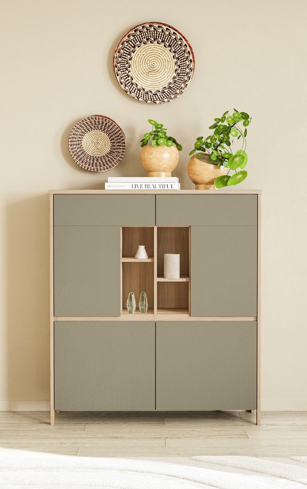 Attraktives Sideboard für noch mehr Stauraum Dieses Highboard »Stranda, moderner Schrank, Stauraumelement im Scandic-Style« von Home affaire bietet dir wertvollen Extra-Stauraum. Aus Holzwerkstoff hergestellt, erhält das Sideboard eine besonders stabile Struktur. Hergestellt wurde das Produkt in Europa. Modernes Wohnen Du fragst dich, wie sich das Möbelstück kombinieren lässt? Hier eine kleine Inspiration für dich: Die Ästhetik des modernen Stils ist reduziert und strahlt eine schlichte Eleganz aus. Indem du die Einrichtung in dezenten Farben wie Weiß oder Grau hältst, Materialien aus Glas oder Naturstein bevorzugst und dich aufs Wesentliche fokussierst, unterstreichst du die Schönheit des Minimalismus. Es ist Bestandteil der Serie Stranda. Von dieser kannst du dich beim Einrichten inspirieren lassen. Für das Wohlfühlgefühl zuhause — das Highboard »Stranda, moderner Schrank, Stauraumelement im Scandic-Style« von Home affaire!
