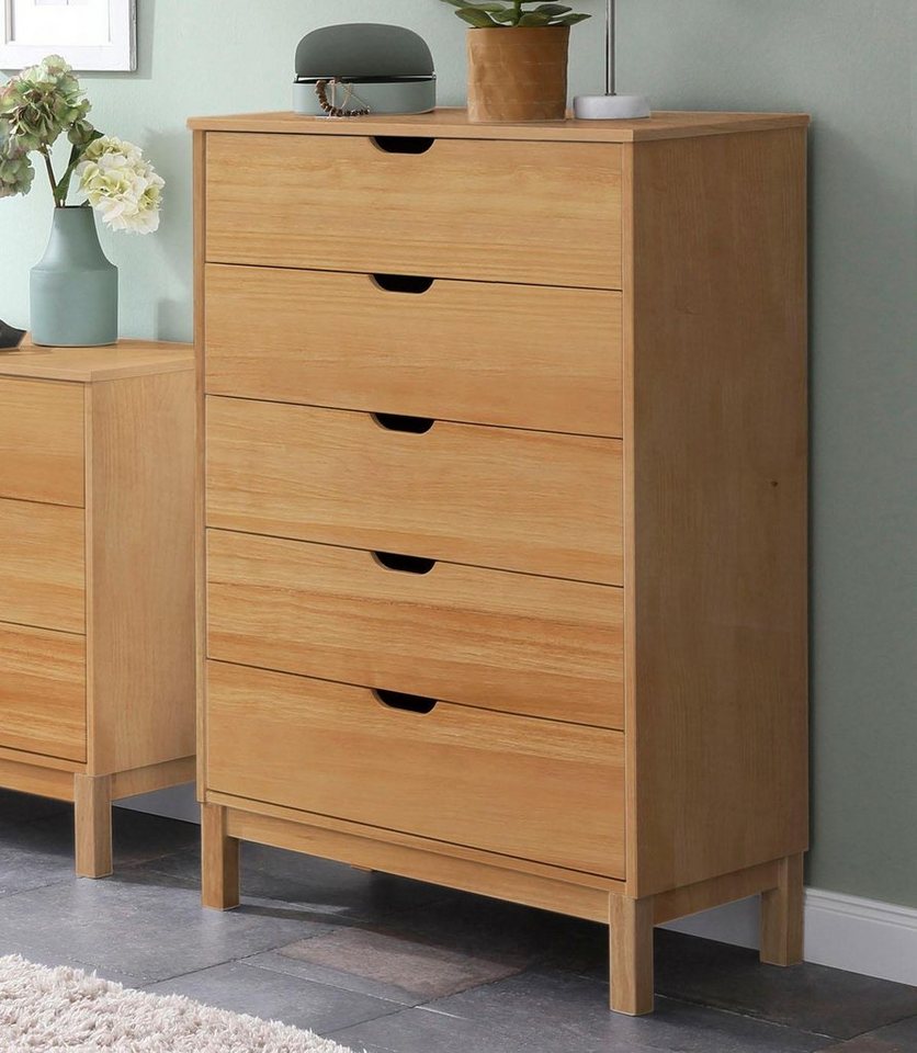 Viel Stauraum auf kleinster Fläche – das bietet die Kommode »Post« von Home affaire mit pflegeleichten Oberflächen. In den übereinander angeordneten Schubladen lassen sich diverse persönliche Dinge wie Kleidung und Accessoires verstauen: Im Schlafzimmer dient das Möbelstück als Wäschekommode und im Kinderzimmer lässt sich hier Spielzeug verräumen. Optisch begeistern die klaren Linien sowie die reizvollen, eingefrästen Griffmulden. Für die Fertigung wurde ein FSC®-zertifiziertes Massivholz verwendet. Die Kommode »Post« von Home affaire mit pflegeleichten Oberflächen eignet sich ideal für kleine Räume.