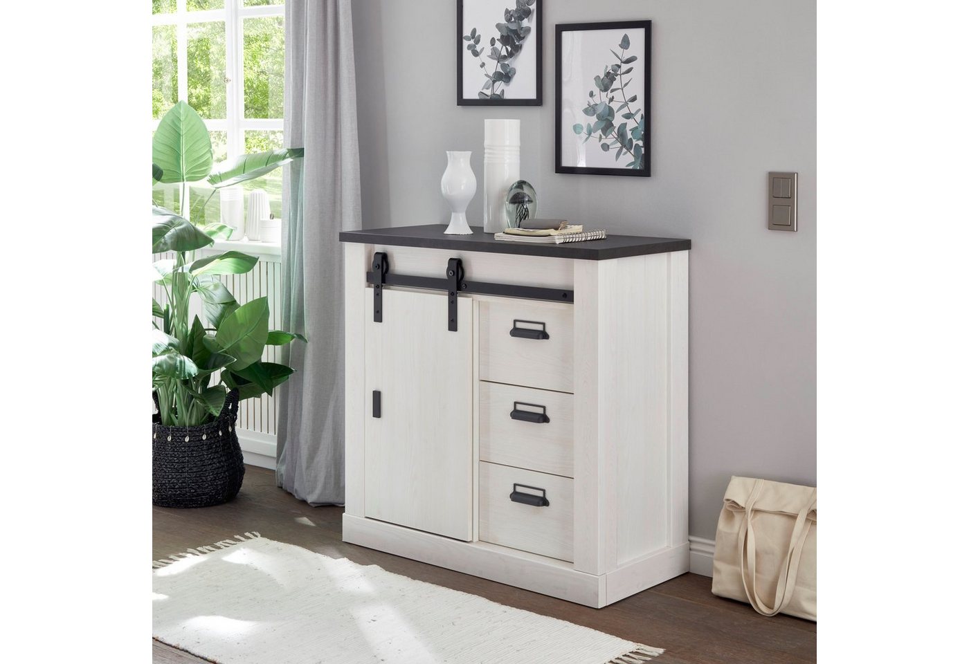 Home affaire Kommode SHERWOOD, Holz Dekor, mit Scheunentorbeschlag...