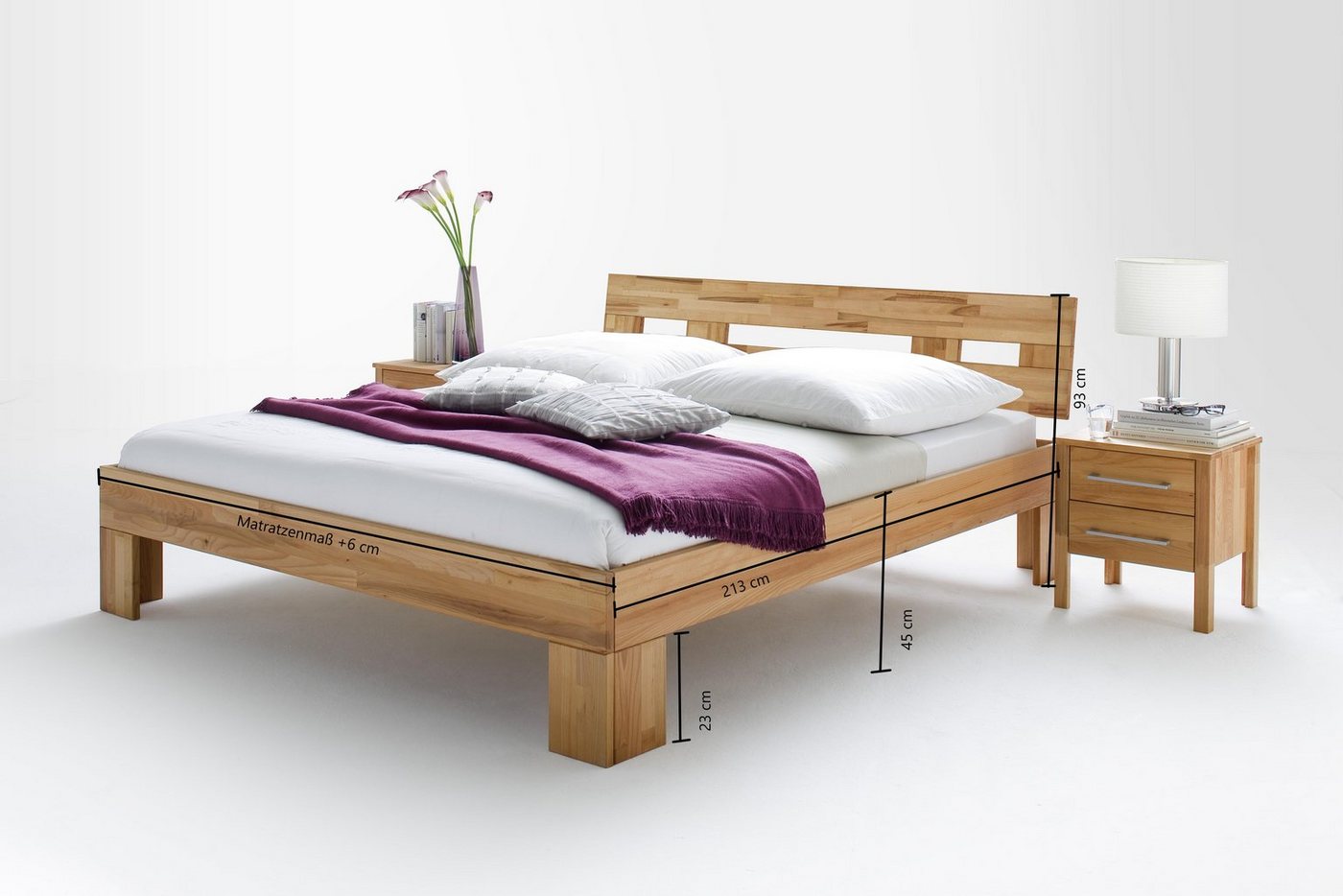 Natürlich schönes Bett Ein stabiler Begleiter: Dieses Massivholzbett »Modesty I Bett mit robustem Fußgestell in Winkelform« von Home affaire schafft ein natürliches Wohnambiente und wird dir aufgrund seiner hochwertigen Ausführung auch lange erhalten bleiben. Die maximale Belastbarkeit liegt bei einem Gewicht von 200 Kilogramm. Das Kopfteil ist 93 cm hoch. Bettgestell mit hochwertiger Massivholz-Qualität Das geölte Massivholz macht das Bettgestell stabil und lange haltbar. Wohnen im Landhaus-Stil Das Massivholzbett im schönen Landhausstil setzt romantische Akzente. Zum Beispiel in Kombination mit Möbeln aus Holz oder Rattan wird das heimelige Ambiente stilecht ergänzt. Dazu können beispielsweise Fundstücke vom Flohmarkt und Antiquitäten den rustikalen Look ergänzen. Das Produkt ist Bestandteil der Modesty I Serie. Auch hiervon kannst du dich beim Einrichten inspirieren lassen. Für eine besondere und wohlige Atmosphäre im Schlafzimmer — das Massivholzbett »Modesty I Bett mit robustem Fußgestell in Winkelform« von Home affaire.