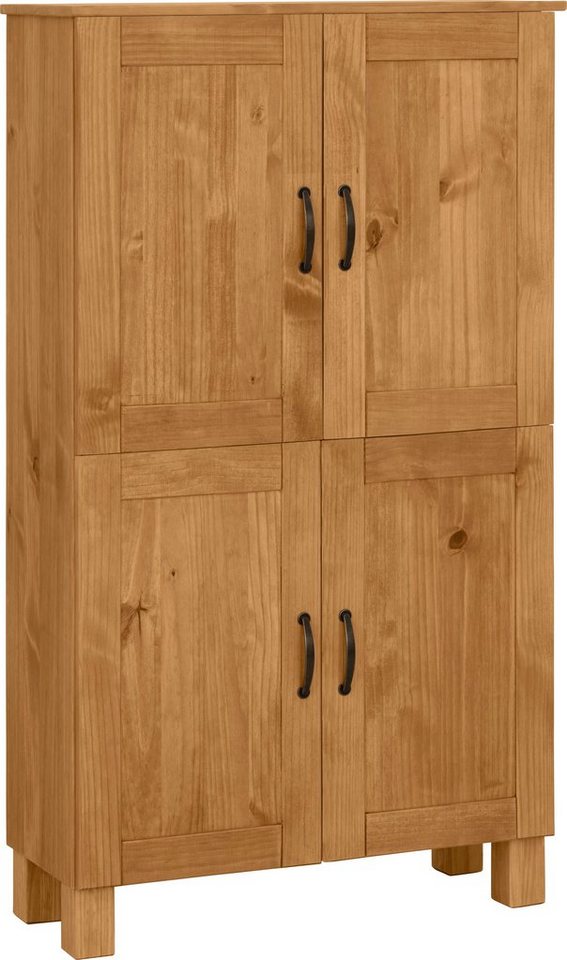 Massiver Holz-Schrank Ein stabiler und langlebiger Begleiter: Dieser Midischrank »Rodby« von Home affaire aus Massivholz sorgt für ein natürliches Wohnambiente und wird dir aufgrund seiner hochwertigen Ausführung lange Freude bereiten. Um den Schrank genau auf deine Bedürfnisse auszurichten, sind die Einlegeböden flexibel einsetzbar. Der Lack auf der Oberfläche kann das Holz vor Schmutz schützen und trägt zur längeren Haltbarkeit bei. Die Griffe aus Metall sind stabil und nutzen sich daher nicht so schnell ab. Belastbar ist dein neues Möbelstück mit bis zu 20 Kilogramm. Modernes Wohnen Der Midischrank versprüht eine ländliche Romantik. Zum Beispiel in Kombination mit Möbeln aus Holz oder Rattan wird das heimelige Ambiente stilecht ergänzt. Dazu können beispielsweise Fundstücke vom Flohmarkt und Antiquitäten den rustikalen Look ergänzen. Er gehört zur Rodby Serie, die weitere Artikel in diesem Stil enthält. So kannst du ein harmonisches Gesamtbild zaubern. Vereint Qualität mit schönem Design — der Midischrank »Rodby« von Home affaire.