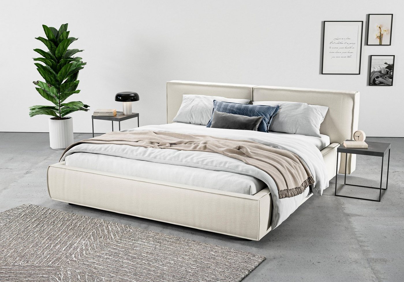 Bett mit weichem Polster Dieses Polsterbett »Adrina mit Biesenoptik, Feincord und Luxus-Microfaser« von INOSIGN zeichnet sich durch einen gemütlichen Bezug und ein gepolstertes Kopfteil aus. An diesem kannst du dich entspannt zurücklehnen und nach einem anstrengenden Tag zur Ruhe kommen. Die maximale Belastbarkeit liegt bei einem Gewicht von 280 Kilogramm. Das gepolsterte Bettgestell steht auf runden Füßen. Das Kopfteil ist 91 cm hoch. Bettgestell mit hochwertiger Buchen-Qualität Das Buchenholz, aus dem das Bettgestell besteht, überzeugt mit seiner Stabilität und Tragfähigkeit, wobei die Oberfläche schön ebenmäßig und widerstandsfähig ist. Die Microfaser des Bezugs neigt kaum zur Fusselbildung und sorgt für eine softe und glatte Oberfläche. Eleganter Wohnstil — Tipps für deine Einrichtung Leerstehende und verwaiste Fabrikhallen inspirieren den industriellen Wohnstil. Mit den richtigen Stilelementen kommt auch dieses Polsterbetts im Industrial-Look besonders gut zur Geltung. Lampen im Factory-Design oder Kunstfelle unterstreichen den angesagten Stil. Das Produkt gehört zur Adrina Serie, die weitere Artikel in diesem Stil enthält. Auch so kannst du ein harmonisches Gesamtbild zaubern. Damit startest du ausgeschlafen und energiegeladen in den Tag — das Polsterbett »Adrina mit Biesenoptik, Feincord und Luxus-Microfaser« von INOSIGN.