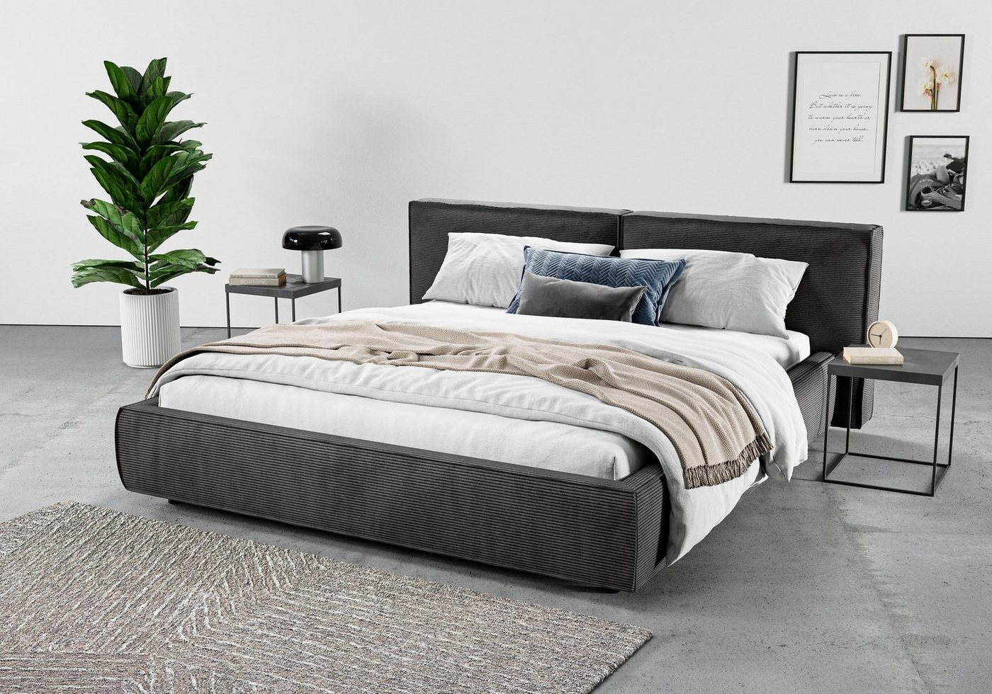 Bett mit weichem Polster In diesem Polsterbett »Adrina mit Biesenoptik, Feincord und Luxus-Microfaser« von INOSIGN lässt es sich nicht nur komfortabel schlafen. Am weichen Kopfteil kannst du dich gemütlich anlehnen und deinen Morgenkaffee genießen. Die maximale Belastbarkeit liegt bei einem Gewicht von 280 Kilogramm. Das gepolsterte Bettgestell steht auf runden Füßen. Das Kopfteil ist 91 cm hoch. Bettgestell aus Buchenholz Das Bettgestell wurde aus widerstandsfähigem und sehr haltbarem Buchenholz gefertigt. Der Bezug aus Feincord zeichnet sich durch eine samtige Oberfläche aus, die deine Einrichtung optisch aufwertet. Dein Zuhause im eleganten Stil Leerstehende und verwaiste Fabrikhallen inspirieren den industriellen Wohnstil. Mit den richtigen Stilelementen kommt auch dieses Polsterbetts im Industrial-Look besonders gut zur Geltung. Zur Inspiration: Schicke Teppiche, polierte Möbeloberflächen und gläserne sowie verspiegelte Details passen perfekt zum exklusiven Wohnstil. Das Produkt ist Bestandteil der Adrina Serie. Auch hiervon kannst du dich beim Einrichten inspirieren lassen. Für einen guten Start in den Tag — mit dem Polsterbett »Adrina mit Biesenoptik, Feincord und Luxus-Microfaser« von INOSIGN.