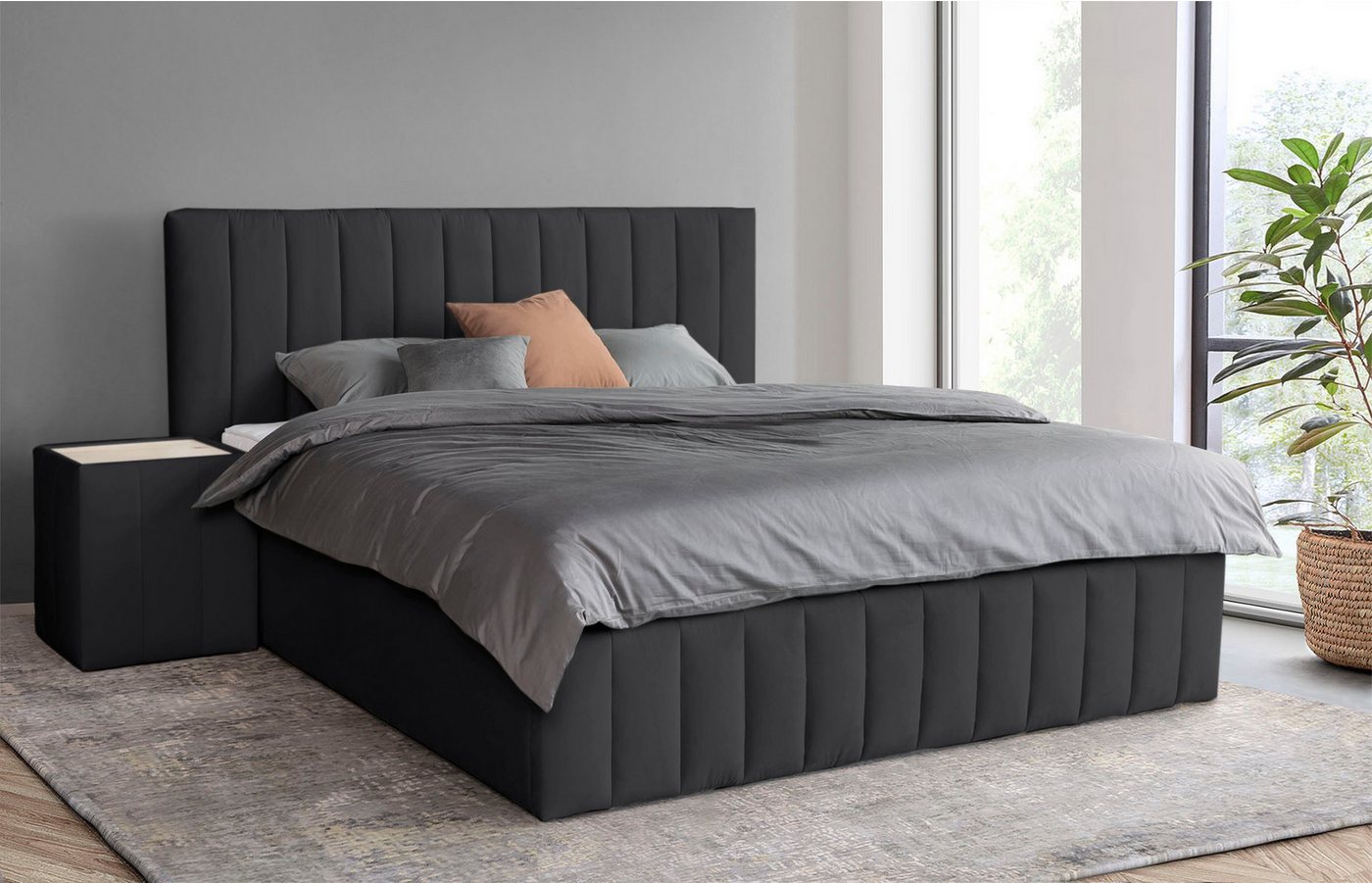 Produktdetails Markeninformationen , Seit 2001 begeistert uns Home affaire mit Landhausmöbeln zum Verlieben. Ob modern, romantisch oder natürlich traditionell – der Fantasie für wunderschönes Einrichten sind kaum Grenzen gesetzt., |Serie , Effy, | Ausstattung & Funktionen Art Lattenrost , Komfort-Lattenrostrahmen, |Anzahl Latten Lattenrost , 42 St., |Art Matratze , 7-Zonen-Tonnentaschen-Federkernmatratze, |Anzahl Matratzen , 2 St., |Anzahl Federn Matratze pro m² , 253 St., |Härtegrad Matratze , H3, |Härtegrad Matratze 2 , H3, |Anzahl Liegezonen Matratze , 7, |Raumgewicht Matratze , 30 kg/m³, | Maßangaben Breite Liegefläche , 180 cm, |Länge Liegefläche , 200 cm, |Breite , 203 cm, |Länge , 217 cm, |Höhe , 117 cm, |Breite Kopfteil , 203 cm, |Höhe Kopfteil , 117 cm, |Matratzenhöhe , 28 cm, |Einlasstiefe Lattenrost , 15 cm, |Liegehöhe , 57 cm, |Bodenfreiheit , 0,5 cm, |Hinweis Maßangaben , Alle Angaben sind ca.-Maße., | Material Material Bettgestell , Holz teilmassiv Holzwerkstoff Spanplatte, |Material Matratzenbezug , Matratzenstoff, |Bezug , Veloursstoff, |Material Füße , PVC, |Herkunftsland Holz , Polen, | Farbe Farbe Füße , schwarz, |Farbe Matratze , weiß, |Farbhinweise , Bitte beachten Sie, dass bei Online-Bildern der Artikel die Farben auf dem heimischen Monitor von den Originalfarbtönen abweichen können., |Farbe , schwarz, | Optik/Stil Form Füße , dreieckig, | Allgemein Ausführung , mit Lattenrost, | Lieferung & Montage Lieferzustand , zerlegt, |Aufbauhinweise , inklusive Aufbauanleitung – eine zweite Person zum Aufbau wird empfohlen, | Hinweise Hinweis Ausstattung , Rahmenbett mit Kopfteil, Lattenrosten und Matratzen (komplett), |Pflegehinweise , Bitte beachten Sie die Pflegehinweise gemäß dem beiliegenden Produkt- und Materialpass., | Wissenswertes Herstellungsland , Made in Europe, |