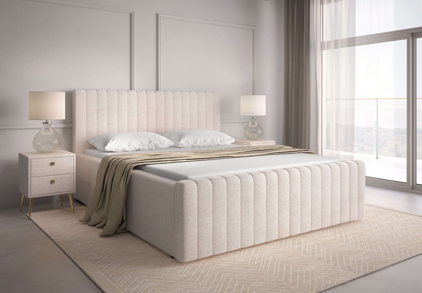 Mit Bettkasten ausgestattetes Bett Um ein echtes Platzwunder handelt es sich bei diesem Polsterbett »MOIVRE wahlweise mit/ohne Bettkasten, Breite Liegefläche 160/180 cm« von Home affaire, das mit einem Bettkasten versehen ist. Die maximale Belastbarkeit liegt bei einem Gewicht von 240 Kilogramm. Je nach Liegebedürfnissen kann der 2-Zonen-Lattenrost durch Schieber verstellt und angepasst werden. Das Bett hat ein gepolstertes sowie cremefarbenes Gestell. Das Kopfteil ist 68 cm hoch. Schöne Kunststoff-Elemente Elegantes Design richtig kombiniert Im klassischen Stil zeigt sich das Polsterbett und wirkt dabei edel und zeitlos zugleich. So könntest du dich einrichten: In Kombination mit schimmernden Akzenten würde der zeitlose elegante Look noch besser zur Geltung kommen. Das Produkt ist Bestandteil der MOIVRE Serie. Auch hiervon kannst du dich beim Einrichten inspirieren lassen. Für einen guten Start in den Tag — mit dem Polsterbett »MOIVRE wahlweise mit/ohne Bettkasten, Breite Liegefläche 160/180 cm« von Home affaire.