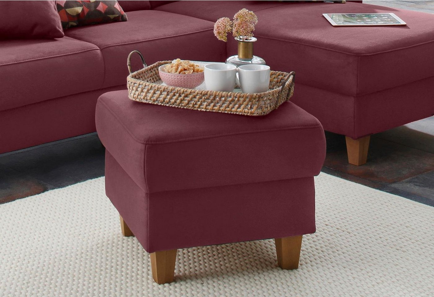 Komfortabel, hochwertig und frei im Raum stellbar: Der gemütliche Polsterhocker »Palmera« von Home affaire im modernen Landhausstil ist die perfekte Ergänzung für deine Wohnzimmereinrichtung. Geprägt ist die attraktive Optik durch die elegante Form und die eleganten Möbelfüße aus Buchenholz. In deinem heimischen Wohnzimmer lässt sich der Hocker vielseitig einsetzen. Vor einem schicken Sessel oder dem Sofa platziert wird er zum Fußhocker. Alternativ nutzt du ihn als Sitzplatz oder als Beistellmöbel. Für die Fertigung wurde ein FSC®-zertifiziertes Massivholz verwendet. Der gemütliche Polsterhocker »Palmera« von Home affaire im modernen Landhausstil ist in unterschiedlichen Bezugsqualitäten und Farben erhältlich.