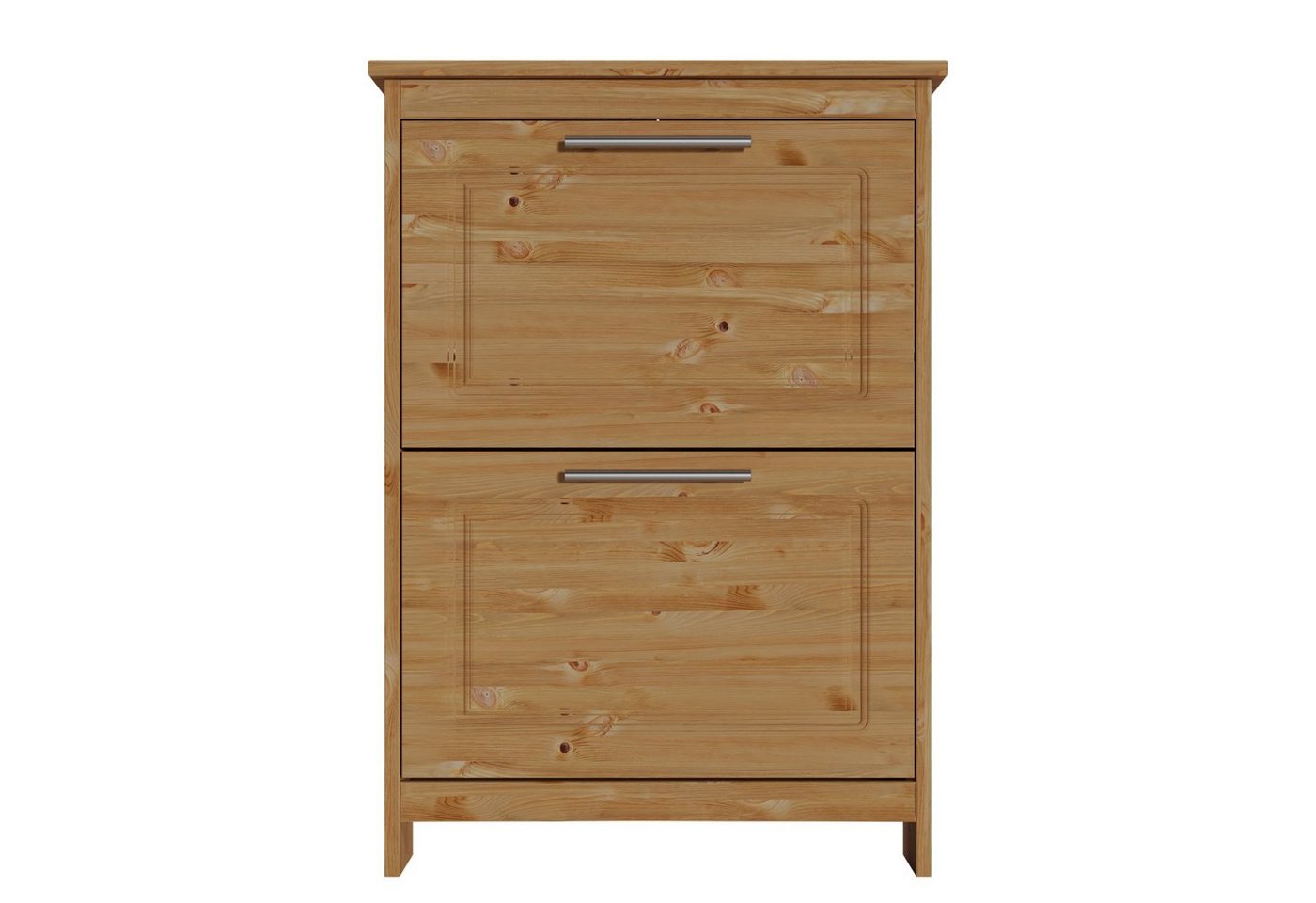 Schuh für einen aufgeräumten Flur Extra-Stauraum für deine Sachen — das bietet dir dieser Schuhkipper »Lukas, Schuhkommode, schmal, Schuhregal, Schuhorganizer« von Home affaire. Einen schönen Schimmer bekommt das Holz dank der geölten Oberfläche, die seinen individuellen Charakter noch betont. Die handlichen Stangengriffe aus Metall sind langlebig und unterstreichen den Stil. In Europa wurde er hergestellt. Wohnen im Landhaus-Stil Der Schuhkipper versprüht eine ländliche Romantik. Zum Beispiel in Kombination mit Möbeln aus Holz oder Rattan wird das heimelige Ambiente stilecht ergänzt. Dazu können beispielsweise Fundstücke vom Flohmarkt und Antiquitäten den rustikalen Look ergänzen. Es ist Bestandteil der Serie Lukas. Von dieser kannst du dich beim Einrichten inspirieren lassen. Vereint schöne Optik mit praktischer Funktion — der Schuhkipper »Lukas, Schuhkommode, schmal, Schuhregal, Schuhorganizer« von Home affaire.
