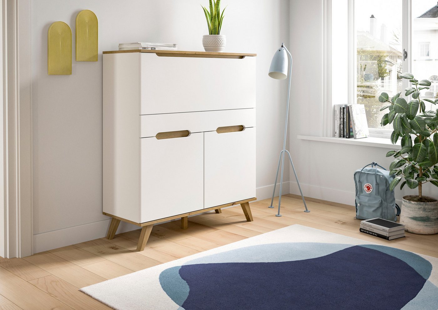 Produktdetails Markeninformationen , Seit 2001 begeistert uns Home affaire mit Landhausmöbeln zum Verlieben. Ob modern, romantisch oder natürlich traditionell – der Fantasie für wunderschönes Einrichten sind kaum Grenzen gesetzt., |Serie , Alesund, | Ausstattung & Funktionen Funktionen , klappbar, |Art Füße , Vierkantfuß, |Art Griffe / Beschläge , Griffmulde, |Art Stauraum , Ablageböden Innenfächer geschlossen Innenfächer offen Schublade, |Anzahl Schubladen , 1 St., |Anzahl geschlossener Fächer , 8 St., |Anzahl Beine , 5 St., |Anzahl Türen , 2 St., |Anzahl Klappen , 1 St., | Maßangaben Breite , 100 cm, |Tiefe , 40 cm, |Höhe , 118 cm, |Gewicht , 51,16 kg, |Breite Tischplatte , 100 cm, |Tiefe Tischplatte , 36 cm, |Hinweis Maßangaben , Alle Angaben sind ca.-Maße., |Tiefe Schubladeninnenmaß , 31 cm, |Höhe Schubladeninnenmaß , 6 cm, |Breite Schubladeninnenmaß , 42 cm, |Breite Fachinnenmaß , 47 cm, |Breite Fachinnenmaß 2 , 17 cm, |Breite Fachinnenmaß 3 , 60 cm, |Tiefe Fachinnenmaß , 36 cm, |Tiefe Fachinnenmaß 2 , 20 cm, |Tiefe Fachinnenmaß 3 , 20 cm, | Material Herkunftsland Holz , Ukraine, |Material Korpus / Gestell , FSC®-zertifizierter Holzwerkstoff, |Material Füße , FSC®-zertifizierter Holzwerkstoff, |Material Türen / Klappen , FSC®-zertifizierter Holzwerkstoff, |Material Scharniere , Metall, |Material Schubladen , FSC®-zertifizierter Holzwerkstoff, | Farbe Farbhinweise , Bitte beachten Sie, dass bei Online-Bildern der Artikel die Farben auf dem heimischen Monitor von den Originalfarbtönen abweichen können., |Farbe Korpus / Gestell , Weiß, |Farbe Füße , Nox Oak Nachbildung, |Farbe Türen / Klappen , Weiß, |Farbe Schubladen , Weiß, |Farbe , Weiß / Absetzung Nox Oak Nachbildung, | Optik/Stil Oberflächenbeschichtung , PVC-Tiefziehfront melaminharzbeschichtet, |Oberflächenoptik , matt, |Oberflächenoptik Gestell , matt, | Lieferung & Montage Aufbauhinweise , einfache Selbstmontage mit Aufbauanleitung inklusive Aufbauanleitung – zum Aufbauen wird eine zweite Person empfohlen, |Anzahl Packstücke , 2 St., |Lieferzustand , zerlegt, | Wissenswertes Herstellergarantie , 2 Jahre gemäß den Garantie-Bedingungen, |Herstellungsland , Made in Ukraine, | Hinweise Pflegehinweise , Bitte beachten Sie die Pflegehinweise gemäß dem beiliegenden Produkt- und Materialpass. feucht abwischbar pflegeleicht, |