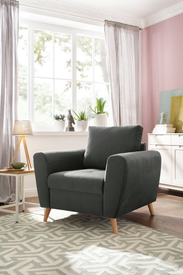 Als rundum bequemes und schickes Sitzmöbel erweist sich der Sessel »Penelope Luxus« von Home affaire mit Komfort-Steppung. Das klare Design, die schlichte Farbgebung und die Füße in Holzoptik sorgen für ein ansprechendes Gesamtbild. Eine breite Sitzfläche mit gepolsterten Armlehnen und einem Rückenkissen schenken dir hohen Sitzkomfort. Unterstützt wird dies durch den verarbeiteten Hochwert-Kaltschaum mit punktelastischer Dämpfung. Wähle deine Lieblingsfarbe und mache es dir auf diesem Sessel im Wohn- oder Schlafbereich richtig gemütlich. Lädt zum Lesen und Relaxen ein: der stilvolle Sessel »Penelope Luxus« aus dem Hause Home affaire mit Komfort-Steppung.