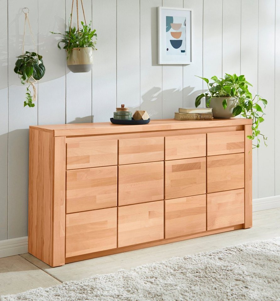 Mit diesem Sideboard kommt ein Möbelstück in die Wohnung, das mit Funktionalität und zeitlosem Design begeistert. Hier verbinden sich klassische, moderne und landhaustypische Elemente zu einer schönen Holzoptik mit geölter Oberfläche. Hergestellt ist das Möbelstück aus FSC®-zertifiziertem Holz in teilmassiv. Die Kommode ist pflegeleicht und bietet in den vielen Schubladen großzügigen Stauraum. Die Front wirkt dank griffloser Optik harmonisch und rundet das Sideboard ab.