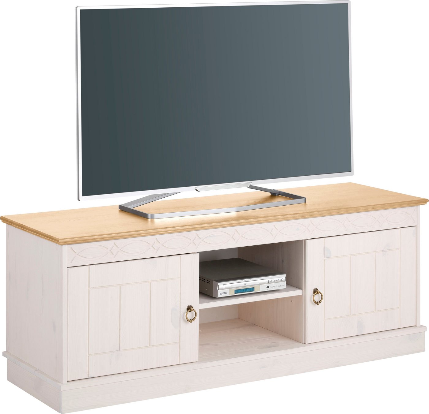 Optisch ansprechend, hochwertig verarbeitet und funktional durchdacht präsentiert sich das geschmackvolle Lowboard »Indra« von Home affaire. Im Hinblick auf die Größe und Farbgebung steht der Fernsehtisch in mehreren Varianten zur Auswahl, sodass individuelle Vorlieben und räumliche Gegebenheiten ideal berücksichtigt werden können. Hinter mehreren Schranktüren und in weiteren offenen Fächern finden jegliche Multimediageräte sowie das benötigte Equipment ihren Platz. Praktische Aussparungen an der Rückwand des TV-Boards ermöglichen eine verdeckte Kabelführung. Darüber hinaus ist das aus Massivholz gefertigte Mediamöbel mit eleganten Metallgriffen ausgestattet und mit hübschen Verzierungen versehen, die das stilvolle Erscheinungsbild attraktiv abrunden. Sorgt für ein wohnliches Ambiente mit dem gewissen Etwas – Das geschmackvolle Home affaire Lowboard »Indra«.