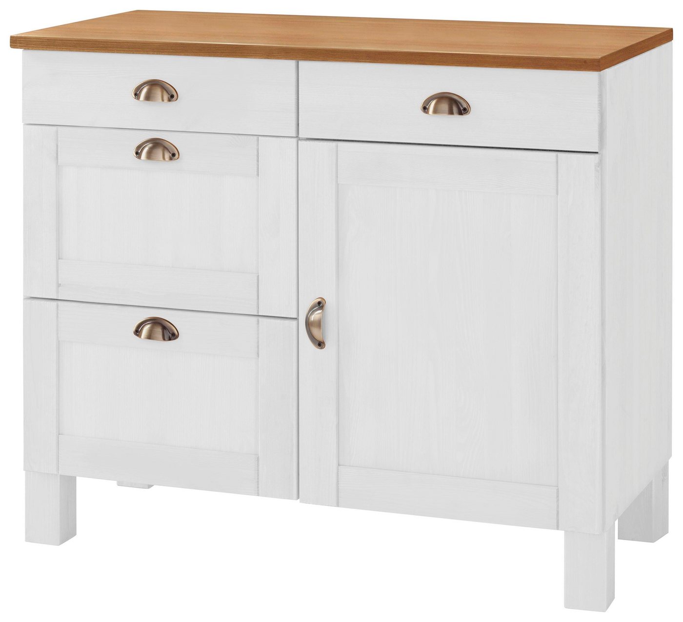 Für ein gemütliches Wohngefühl: Der aus FSC®-zertifiziertem, massivem Holz gefertigte Unterschrank »Oslo« überzeugt mit natürlichem Charme und ist eine optisch ansprechende Bereicherung in jeder Küche. Der Schrank verfügt über mehrere Schubkästen in unterschiedlichen Größen, darüber hinaus bieten geräumige Schrankfächer großzügigen Stauraum für Vorräte, Geschirr oder Küchenutensilien jeglicher Art. Die Laufleisten und Scharniere aus Metall sowie die stabilen Füße betonen die hochwertige Verarbeitung und die erstklassige Qualität des Küchenschranks. Hübsche Maserungen im Holz und originelle Muschelgriffe aus Metall machen das Mobiliar zu einem attraktiven Hingucker in der modernen Landhausküche. Der aus Massivholz gefertigte Unterschrank »Oslo« ist in verschiedenen gelungenen Farbgebungen und Ausführungen erhältlich, sodass persönliche Vorlieben sowie bereits vorhandene Einrichtungskonzepte optimal berücksichtigt werden können.