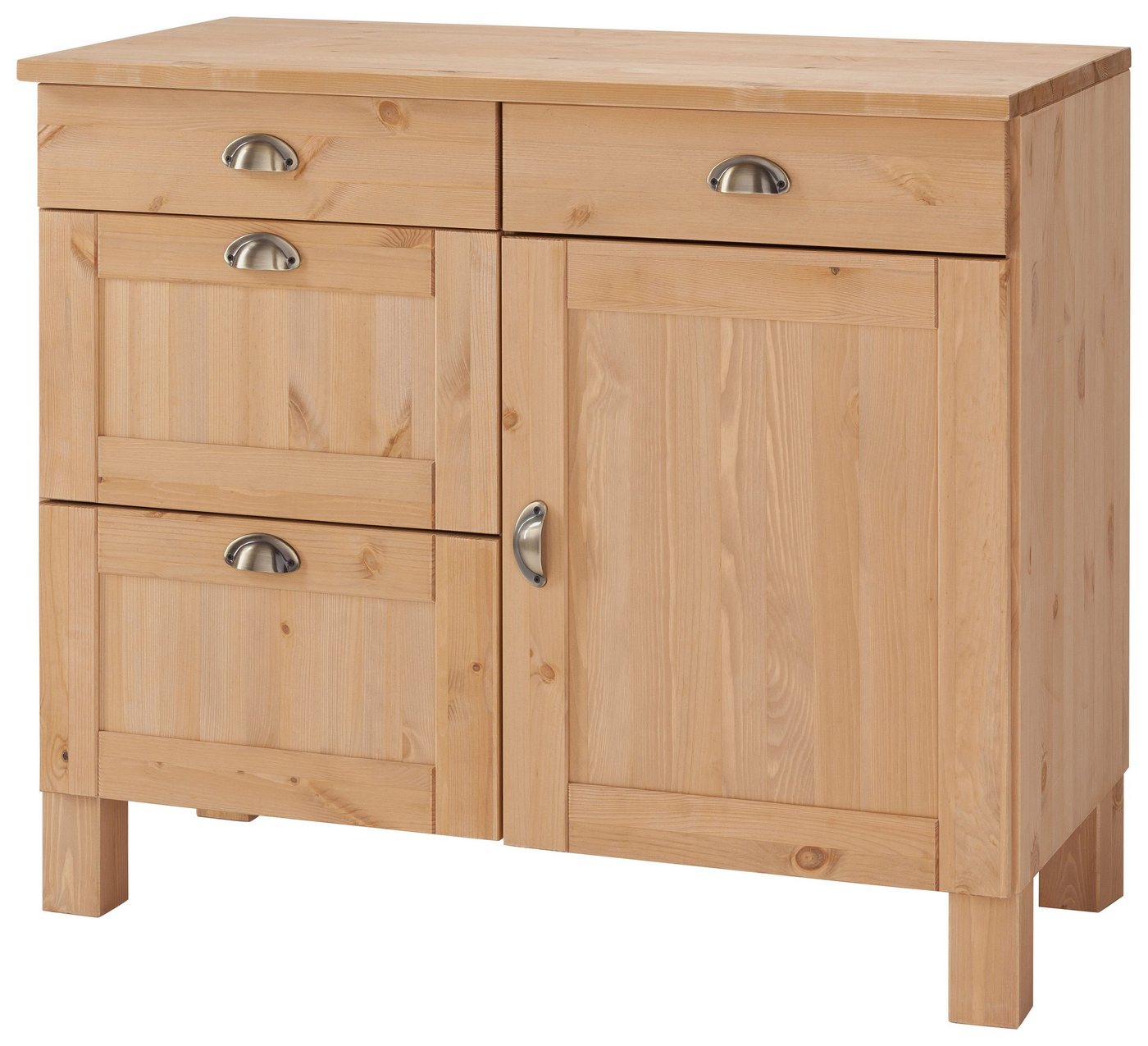 Für ein gemütliches Wohngefühl: Der aus FSC®-zertifiziertem, massivem Holz gefertigte Unterschrank »Oslo« überzeugt mit natürlichem Charme und ist eine optisch ansprechende Bereicherung in jeder Küche. Der Schrank verfügt über mehrere Schubkästen in unterschiedlichen Größen, darüber hinaus bieten geräumige Schrankfächer großzügigen Stauraum für Vorräte, Geschirr oder Küchenutensilien jeglicher Art. Die Laufleisten und Scharniere aus Metall sowie die stabilen Füße betonen die hochwertige Verarbeitung und die erstklassige Qualität des Küchenschranks. Hübsche Maserungen im Holz und originelle Muschelgriffe aus Metall machen das Mobiliar zu einem attraktiven Hingucker in der modernen Landhausküche. Der aus Massivholz gefertigte Unterschrank »Oslo« ist in verschiedenen gelungenen Farbgebungen und Ausführungen erhältlich, sodass persönliche Vorlieben sowie bereits vorhandene Einrichtungskonzepte optimal berücksichtigt werden können.